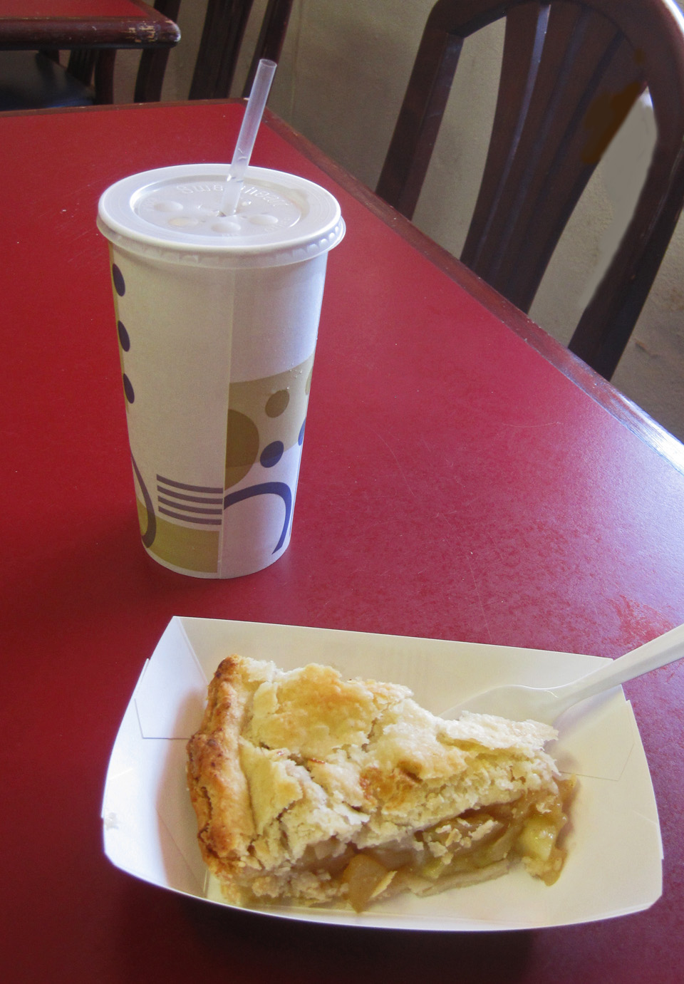 AND we had pie at the cafe. I threw caution to the wind and tried their famous raspberry pie with ice cream and raspberry sauce and Kim chose the fresh apple pie, made that morning from apples picked outside the kitchen door. It was so good he had to have another piece (this from a true pie aficionado). As it happened, he placed the second order with the baker herself, who exclaimed with glee, “For real?” when he said he just had to have another.