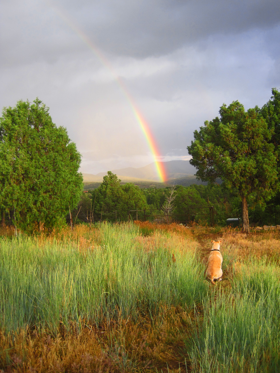 I, personally, love living the kind of life where my dog has the time and presence of mind to sit and gaze at a rainbow. Wishing each of you this kind of peace: