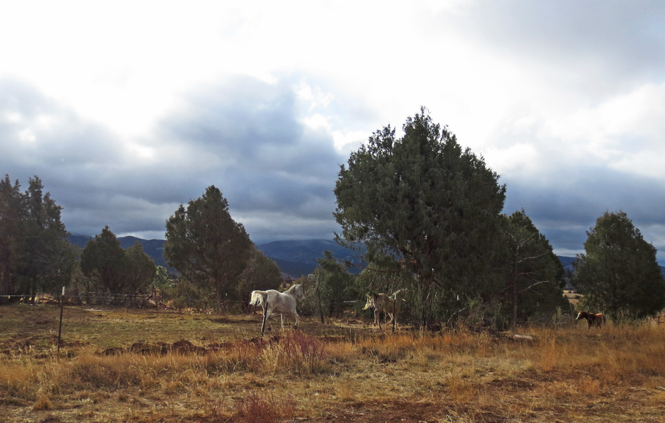 They weren’t these horses and they weren’t mine. It was the year I moved here. I’d only been here a month. I noticed the horses that were pastured on the 4 acres in front of my house (whose owners didn’t live nearby) weren’t being fed and there was about a foot of snow on the ground. I made some inquiries and learned that the man I’d seen feeding them before–their owner–had had a tragedy. His adult son had been murdered in another village in a very brutal way. So I looked into getting some hay lined up. The next time I saw their person, I went out and introduced myself. I told him that I had heard of his tragedy, how sorry I was for his loss, that I didn’t know how he breathed, let alone got up in the morning and got himself all the way over here with hay. I told him I’d lined up some hay and, with his permission, I’d feed his horses until he’d had more time to grieve. I fed them until that early spring.