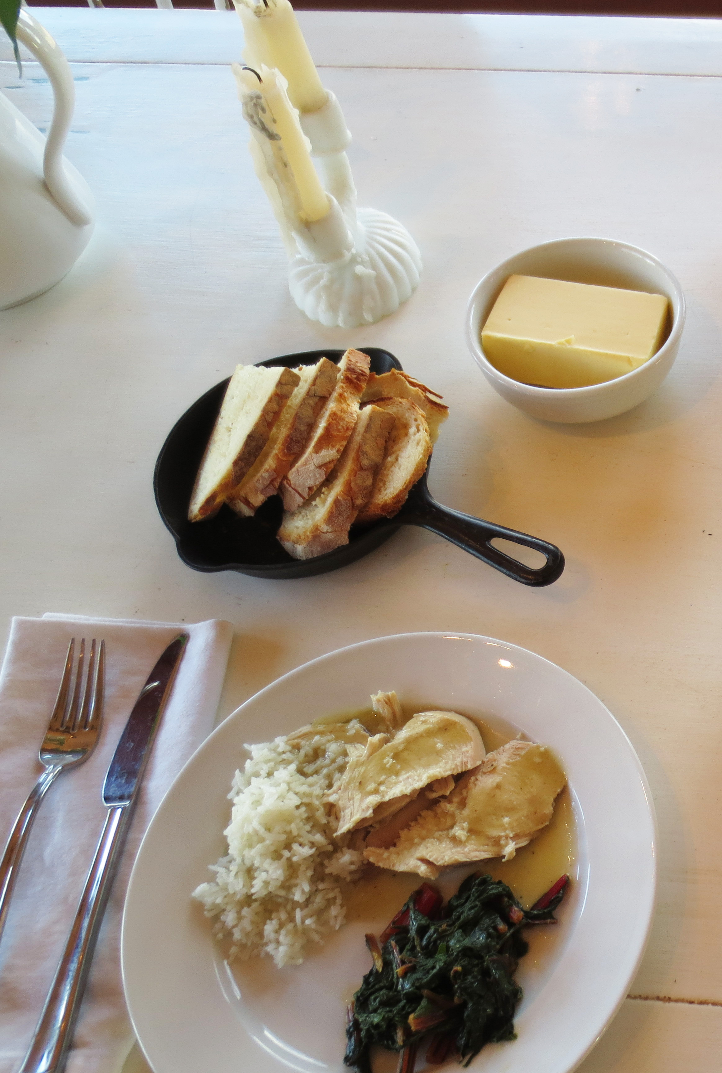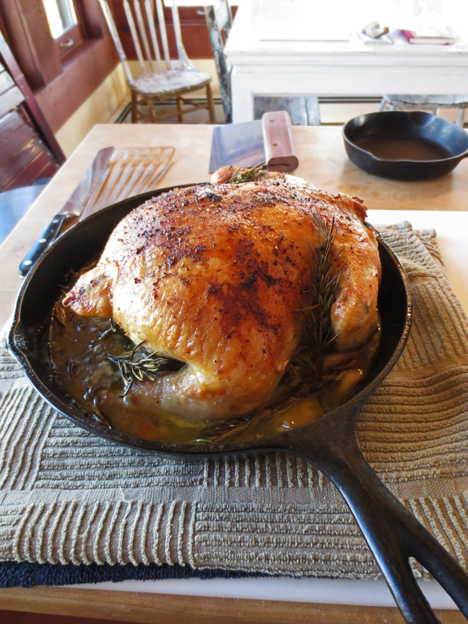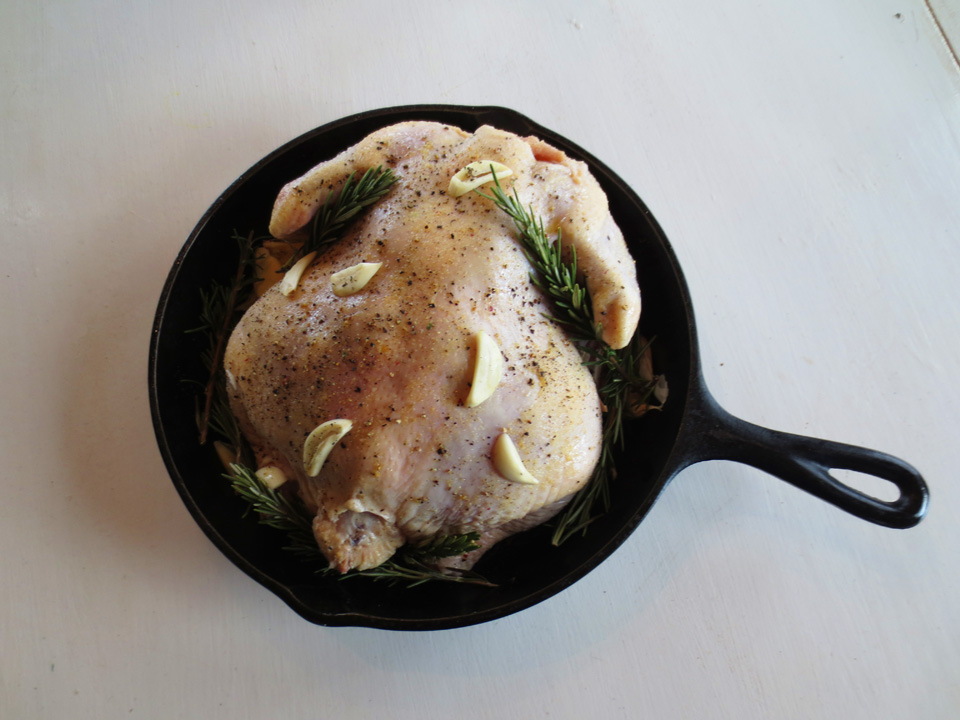 And then he put in the chicken: fresh rosemary and garlic, olive oil and pepper.