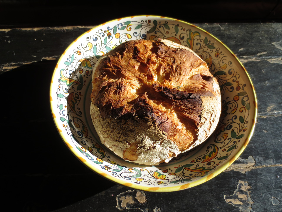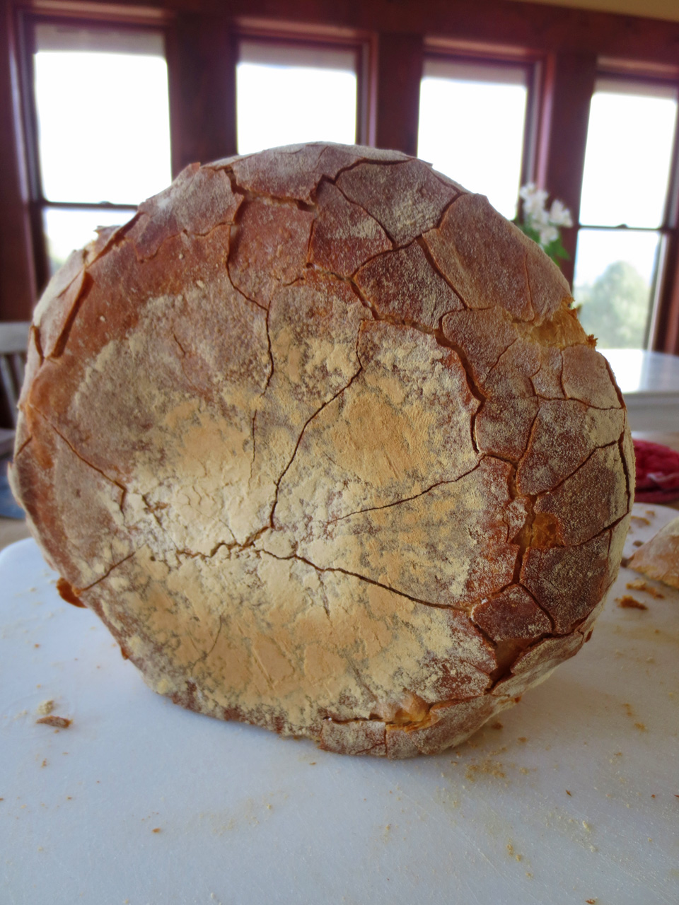 I was there when he took it out of the oven, placed it on its wire perch to cool, and it crackled and popped as moisture escaped from inside the loaf, through the hard crust, cracking it, and occasionally blowing out little tufts of flour. Miraculous! I swear these are the things that make up a life.