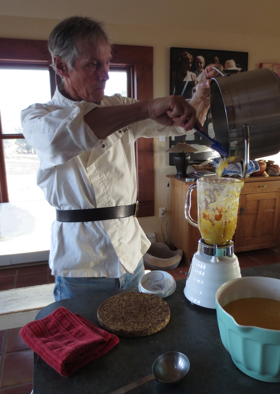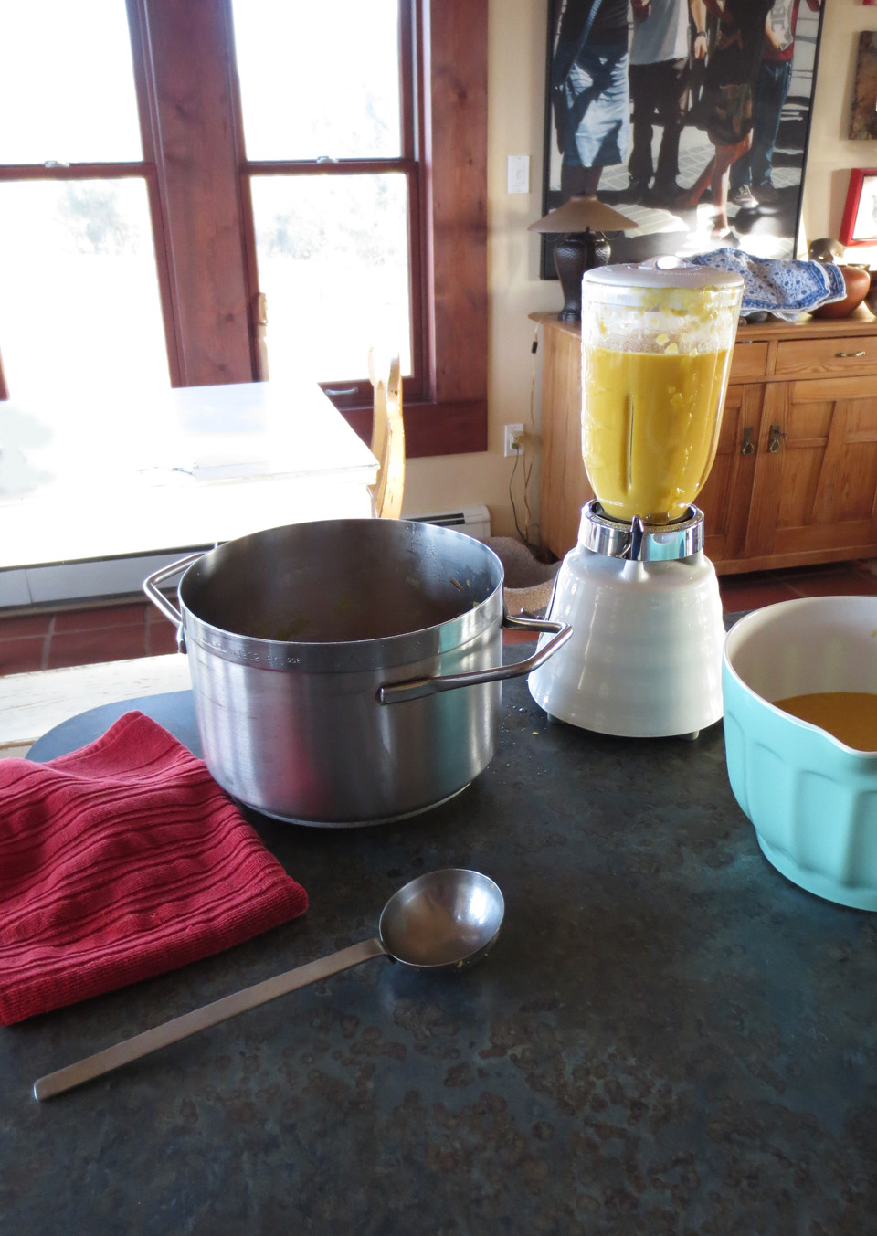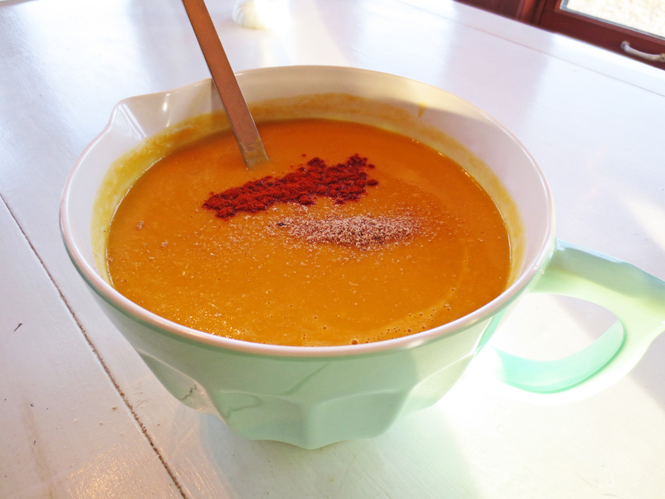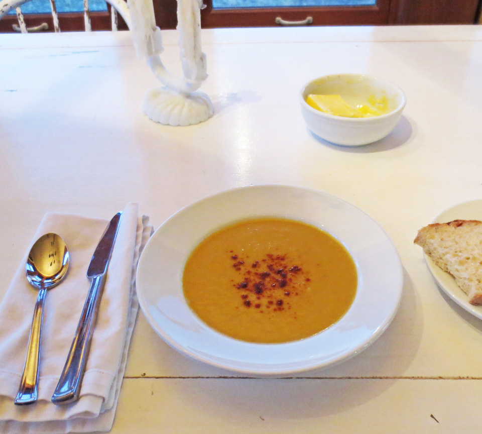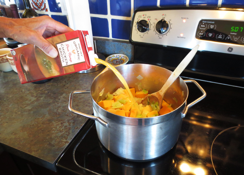 With Thanksgiving having sneaked up on all of us (I mean YIKES it’s THIS THURSDAY, right?), it’s finally time to turn our thoughts toward menus… you think? And Kim (see previous post A Very Mini Artist’s Colony in New Mexico) decided to offer all of us his recipe for a truly wonderful fall soup. It’s simple and delicious and would make a great light dinner the night before or a wonderful starter soup for the big event. Whenever you choose to try it, I hope you’ll write to tell me what you think.