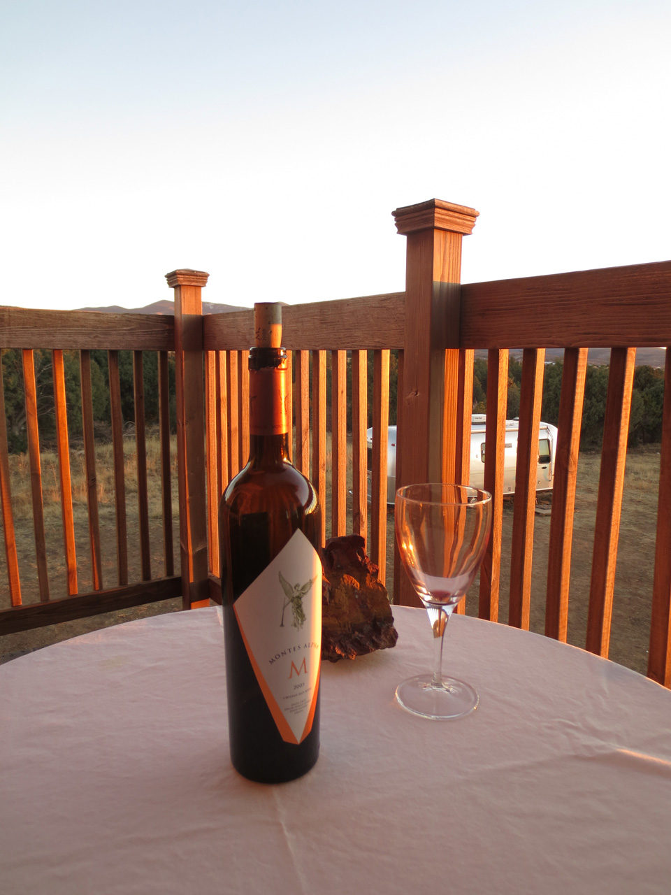 Silently, I climbed the stairs to the second floor and walked out on the framework that would become my living room deck. I sat and opened my backpack, pulling out a small bottle of wine and the wine glass I’d brought with me for the occasion. I poured myself a glass and sat pondering. Surrounded by thunderstorms off in the distance, the fragrance of rain on the air, I raised my glass and toasted the life I didn’t yet know.