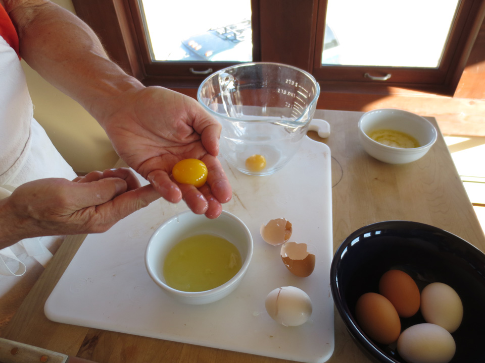 In a bowl beat the eggs and sugar quite well till light in color, but don’t over-beat adding too much air to the mix (this is my dear old mixer that I bought very used at a garage sale in the early 70s).
