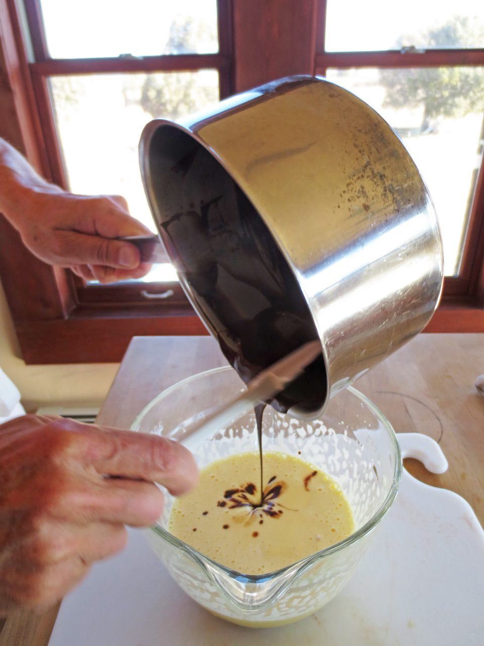 With a spatula add the melted and slightly cooled chocolate to the egg mixture…