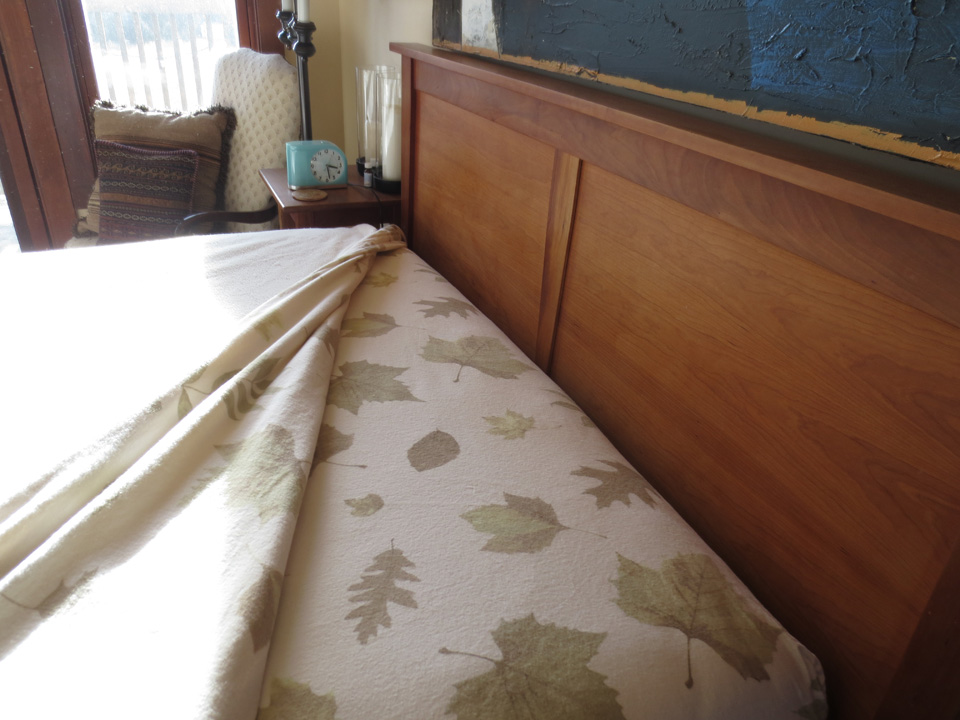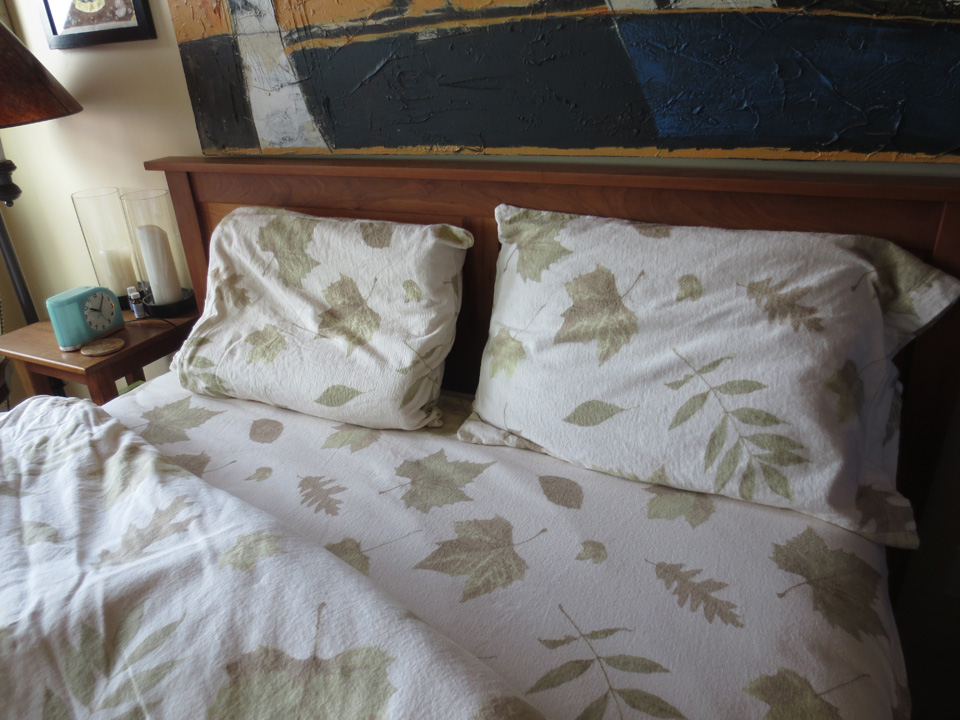 So I received the Gaiam Living catalog in the mail the other day and wiffled through it to see if they had any enchanting flannel sheets and, guess what? They did! They are organic cotton and are called, “Walk in the Park,” because they are covered with an assortment of pale brownish green leaves, floating across the cream colored sheets as though they were blowing in the wind.