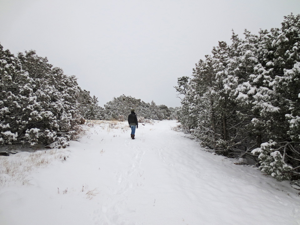 And THIS snow, I was told by Kim, is perfect for snowballs. I saw him transformed into a seven-year-old boy, packing the snow in his gloved hands into the perfect ball, then tossing it into the air, watching it arc into the canyon below us. I wasn’t sure I could trust him, his instincts to the snowball (and perhaps the fight) almost bred into him. But of course I could. I walked untroubled through the peaceful forest that backs up my property, all of us experiencing it in our own individual ways.