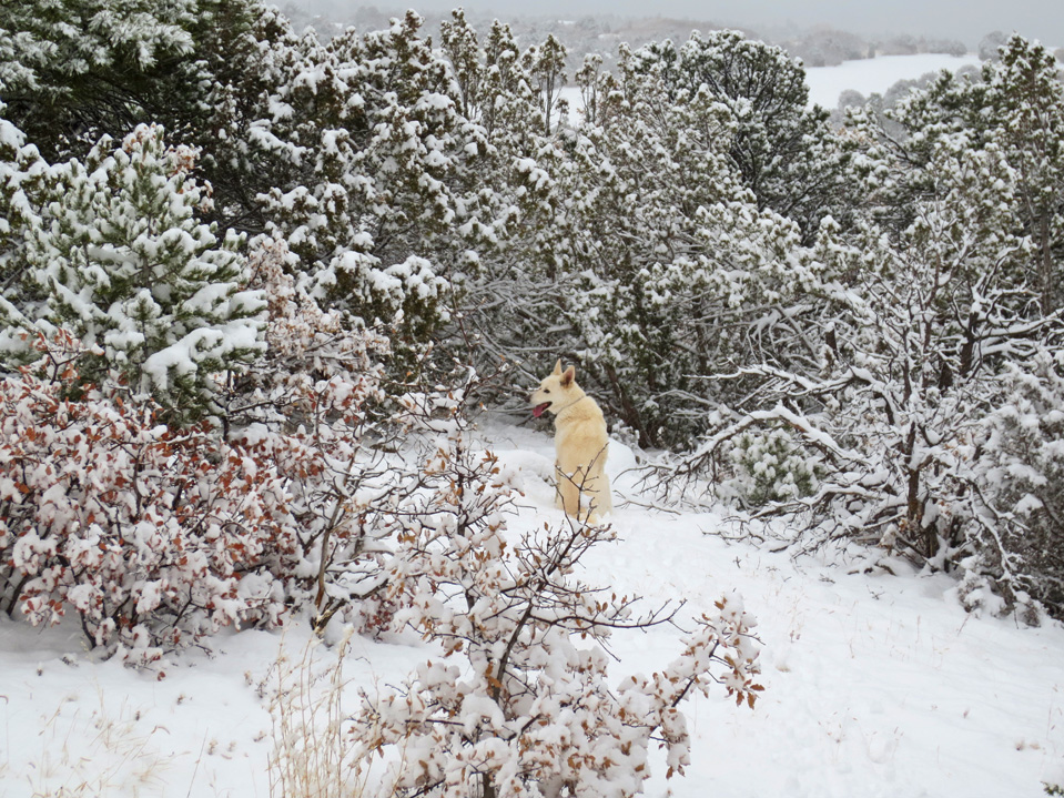 My Kelee IS in fact a snow man but I’m afraid I wasn’t fast enough to get a picture of him rolling in the snow on his back, three legs kicking the air in delight, a huge grin on his face. I’m sorry. I promise to be in a better position next time.