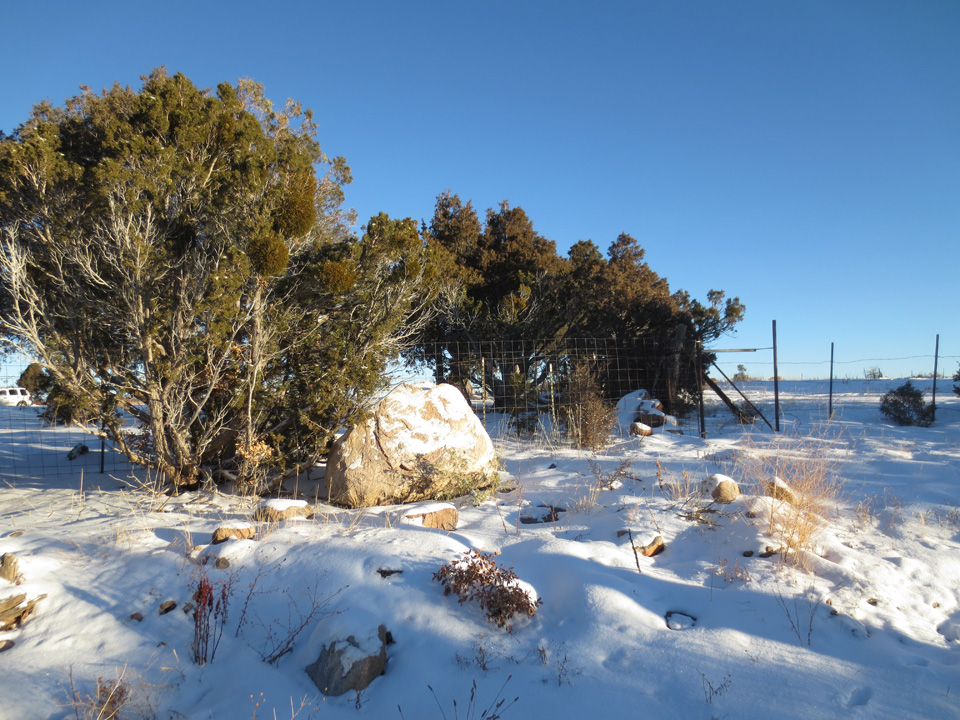 I had to go to my wonderful doctor in Santa Fe yesterday. He’s helping me so much with the pain of shingles that I’m forever grateful (see previous post An Antidote for Pain). He’s an MD/acupuncturist and he is both kind and brilliant. But first I took the dogs for a walk on the land grant in the fresh snow of the night before.