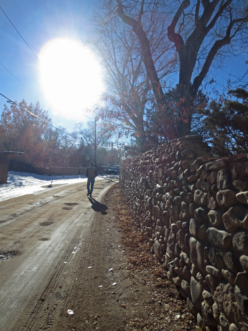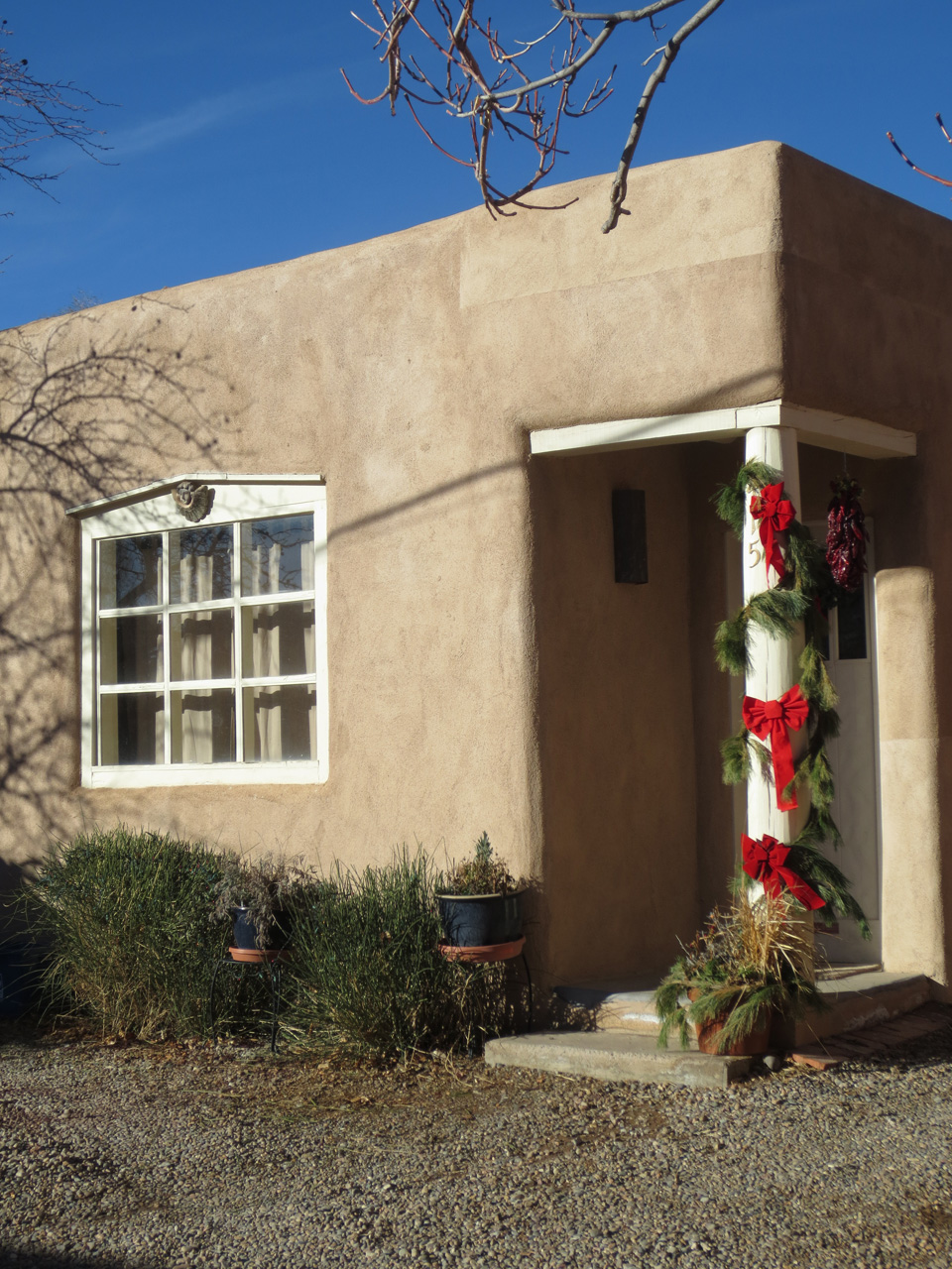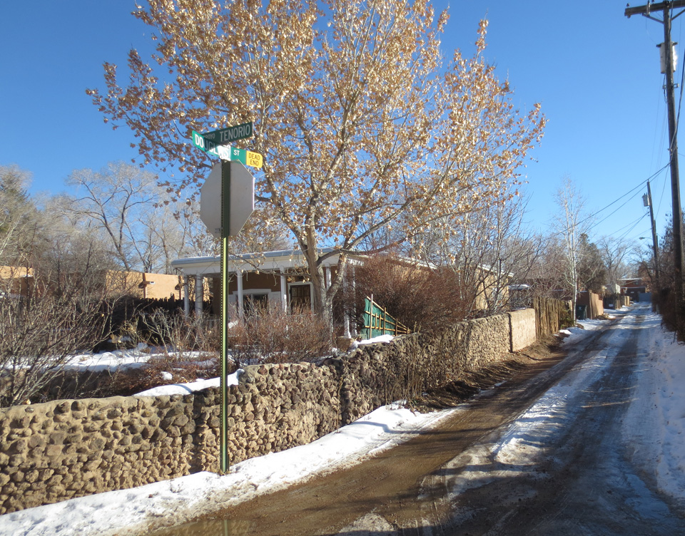 After coffee I took a stroll through the neighborhood and, although they hadn’t received as much snow as we had at 8500 feet, it was still very beautiful. And I realized many of you don’t live in New Mexico and these kinds of sweet, little, adobe neighborhoods, and tiny, winding, streets, aren’t available to you. So I took some photos. I hope they’ll give you a bit of the very special experience of Christmas in Santa Fe. Merry Christmas!