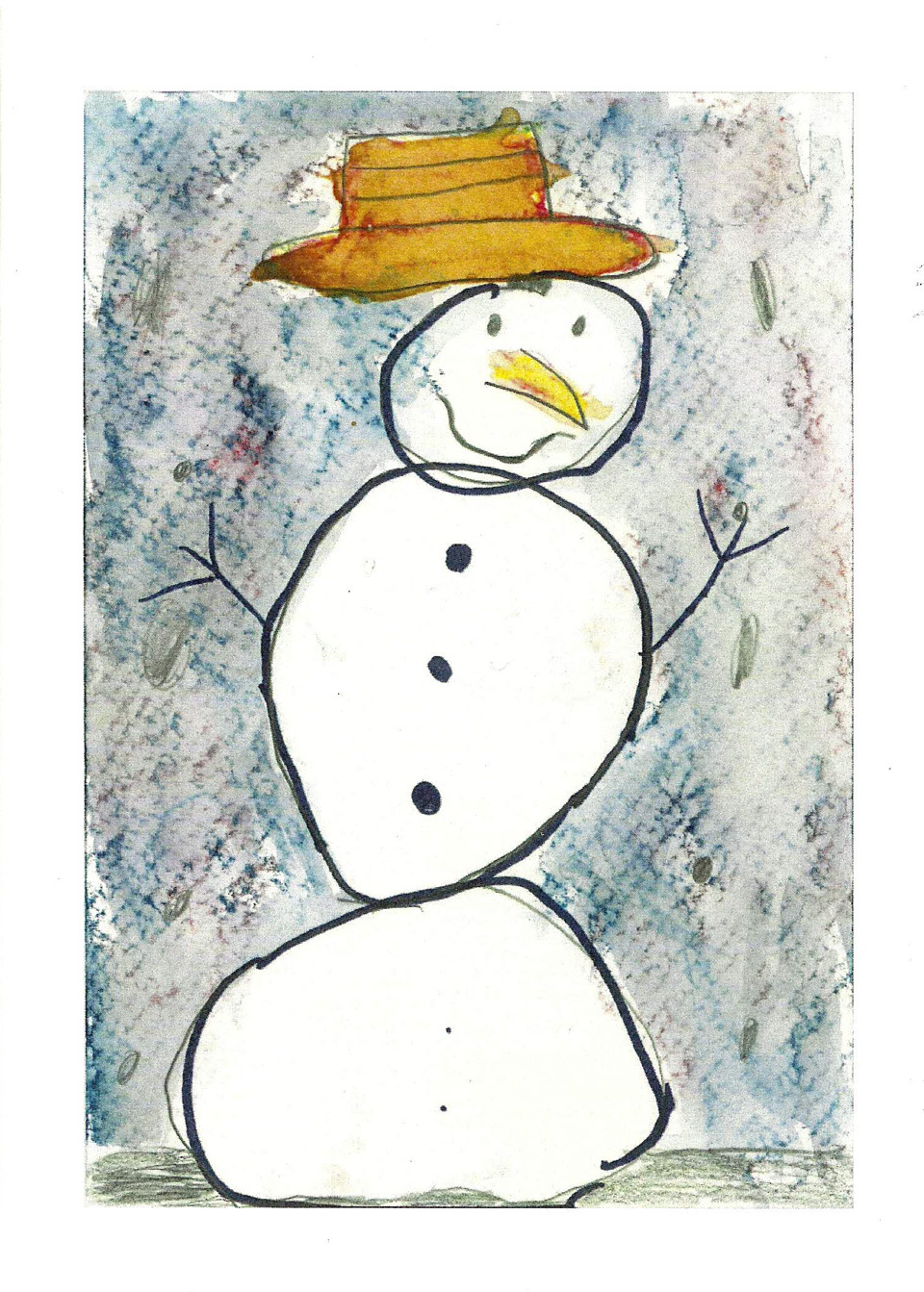 Then, when I arrived home, there was a Christmas card waiting for me from my mom. This snowman, created by seven-year-old Shyla Hunt, a member of the Umpqua Valley Boys and Girls Club of Roseburg, Oregon, was on the cover.