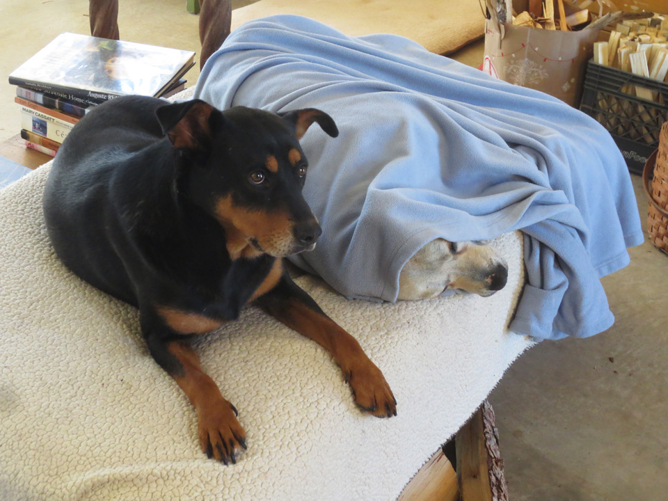 (This is Finn on our return. He gets SO cold with so little fur, but he loves his walks anyway and REALLY loves coming home to a fire in the wood heater, his bankie and Skye).