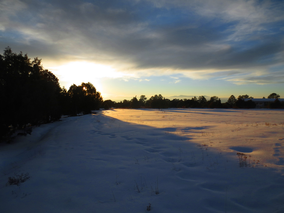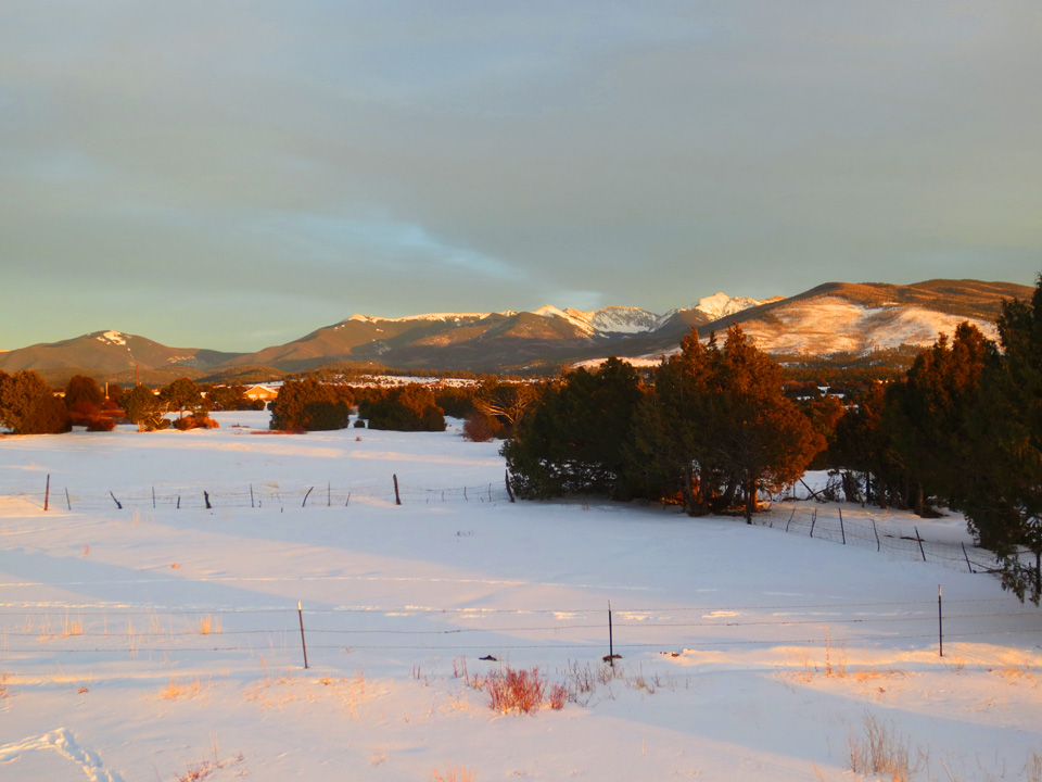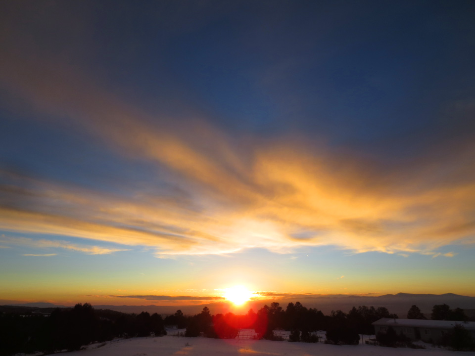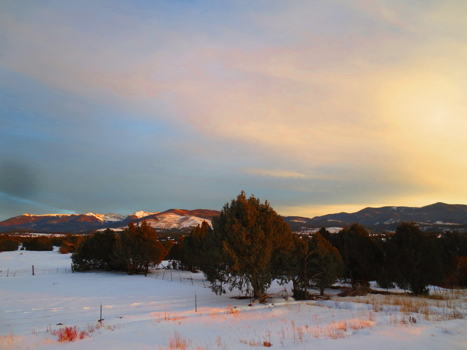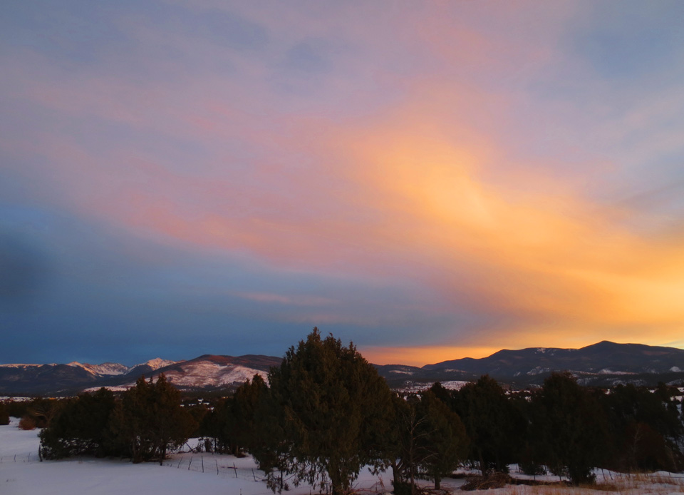 … until, more quickly than I thought possible, the sun slipped down behind the Jemez–the mountain range that includes “Georgia O’Keeffee’s mountain,” Cerro Pedernal…