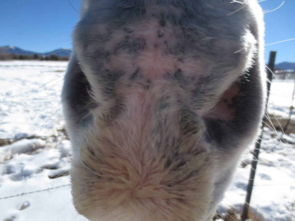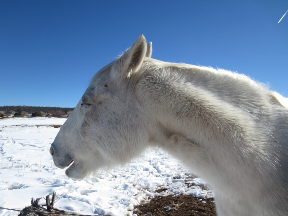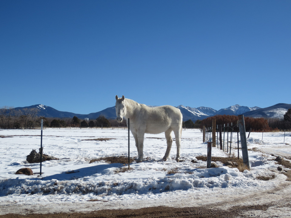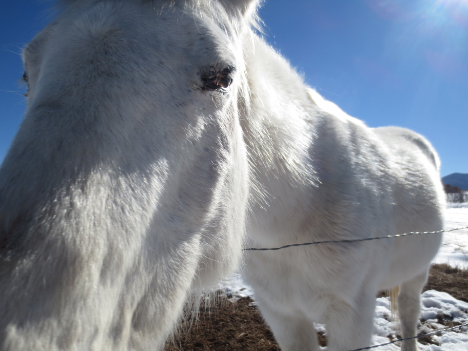 You’ve all seen this guy before. He’s pastured out on an open 40 acres or so that run alongside my road. He’s often very picturesque against the mountain so I’ve taken lots of photos of him. He’s an old man now, put out to pasture to live the rest of his days in peace. In the winter he gets loads of fresh green hay; in the summer the grasses of this lustrous pasture.