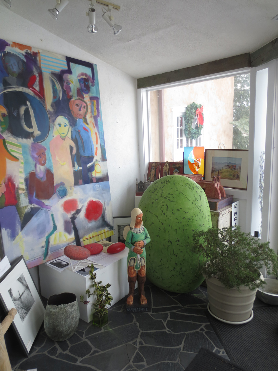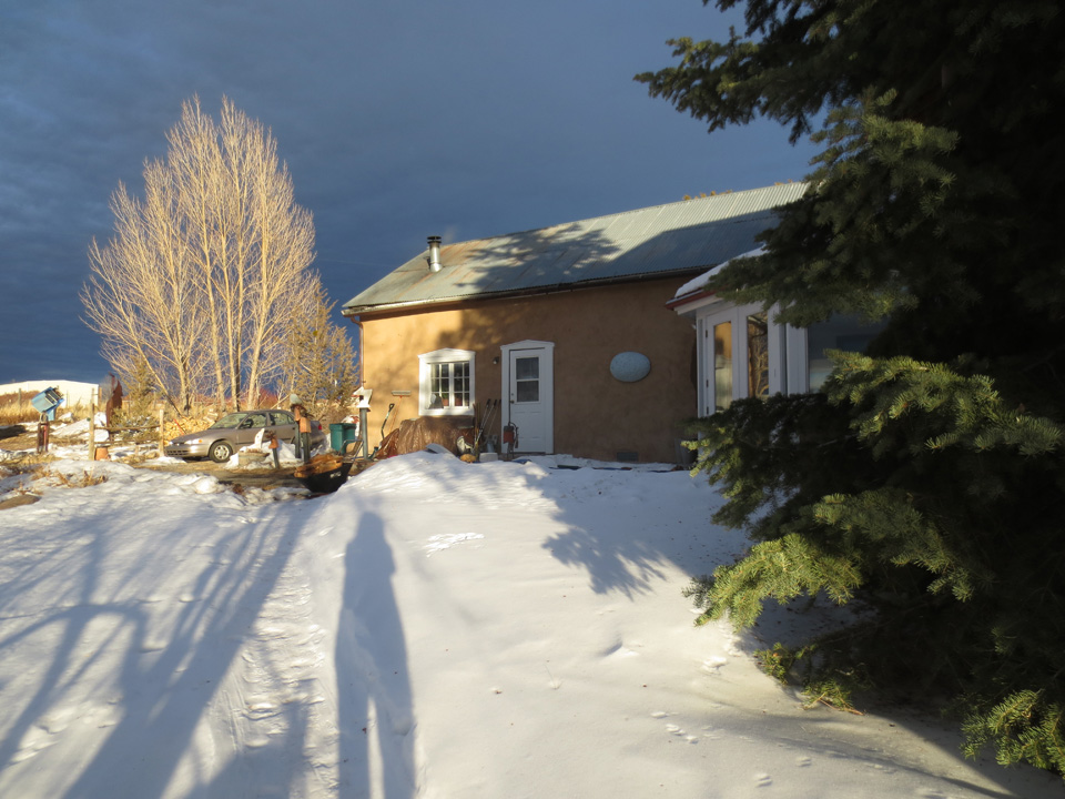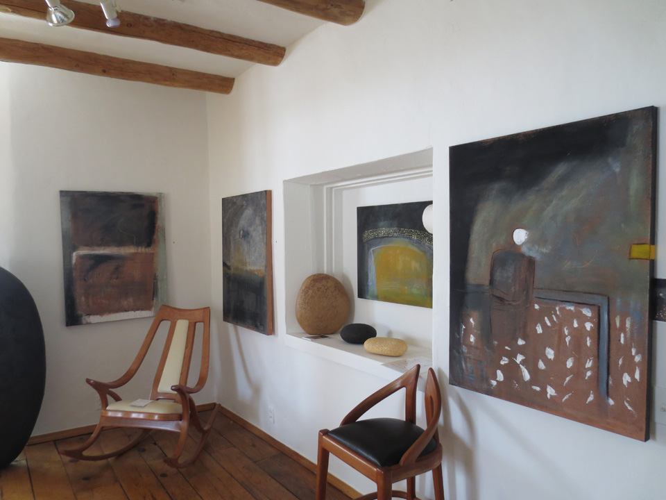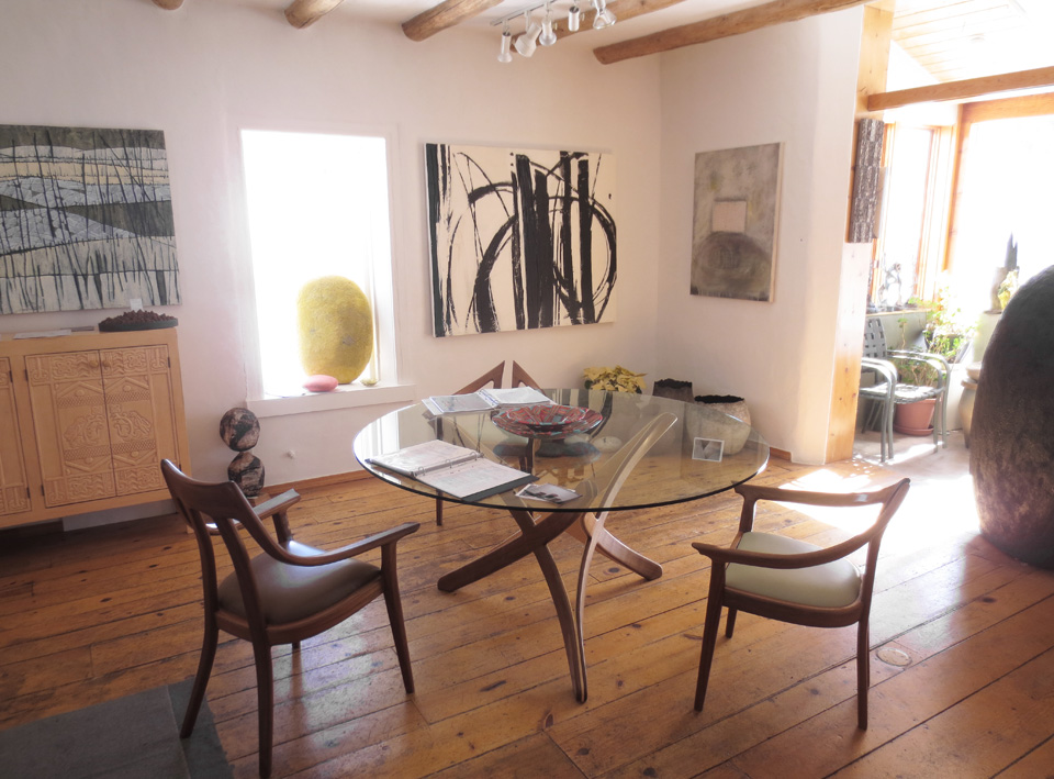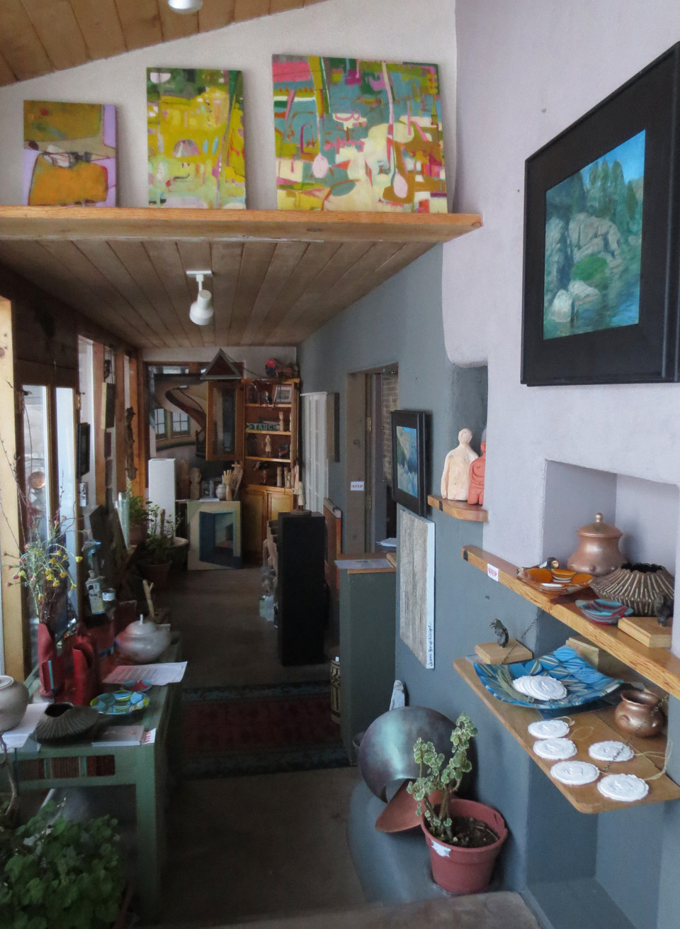 So I headed over to the gallery to have the first Borscht of my life. Amazing when you consider I’m half Russian (my father’s parents were born in Lithuania). And just as I arrived, the sun broke through the clouds. This is not the gallery’s entry, but the light was so beautiful, playing on this particular wall. It’s actually a shot of the kitchen and, seeing the gallery from this angle really gives the old adobe house a sense of being a home, I think. In fact it has been for decades… a wonderful home and then a “live in” gallery for 25 years.