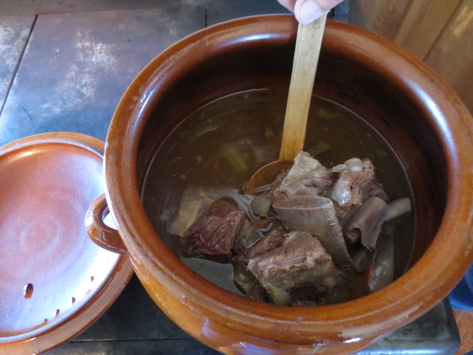 Sorry, my dears, but I took no more photos. I arrived back in the kitchen, fragrant from days of cooking, to steaming bowls of Borscht being served up. I watched as Kim dropped dollops of sour cream into that gorgeous purple stew and then I sat to eat.