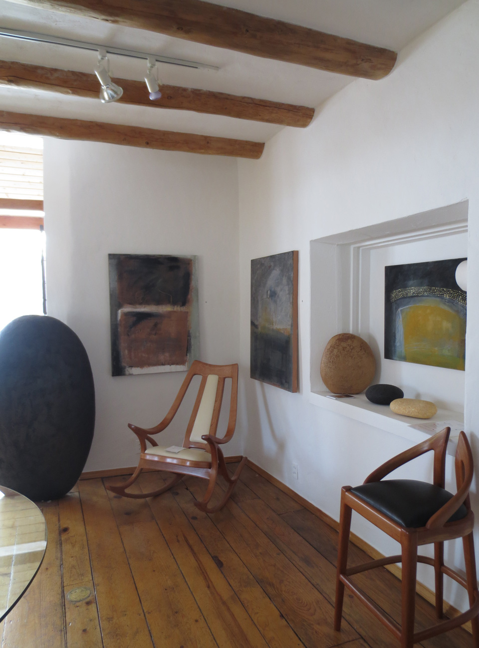 By now most of you know that my good friend, Kim (see previous post A Very Mini Artists Colony in New Mexico), has moved over to Hand Artes Gallery (see previous post Change, Lovely Change) to watch over it while Bill and Margaret Franke, the gallery’s owners (see previous post Disparet Pieces), are in the Mid-West for the winter. He’s acting as caretaker/gallery host/artist in residence for a couple of months. But the gallery is just one minute, maybe two, down my road. So I’m frequently over there for supper, lunch, or to taste some new treat Kim has cooked up. Kim is an amazing chef, as most of you already know (see previous post Adventures in the Art of Bread Making).