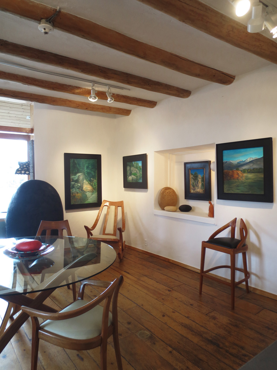 Thank you for sharing Kim’s oil paintings. I love the vivid colors. Would have enjoyed a closer look of each.. you know like a private blog showing! I am grateful that you do such a good job of documenting the artists on a ridge of the high road in the Sangre de Cristo Mountains, spilling onto the other community ridges, Jeane.