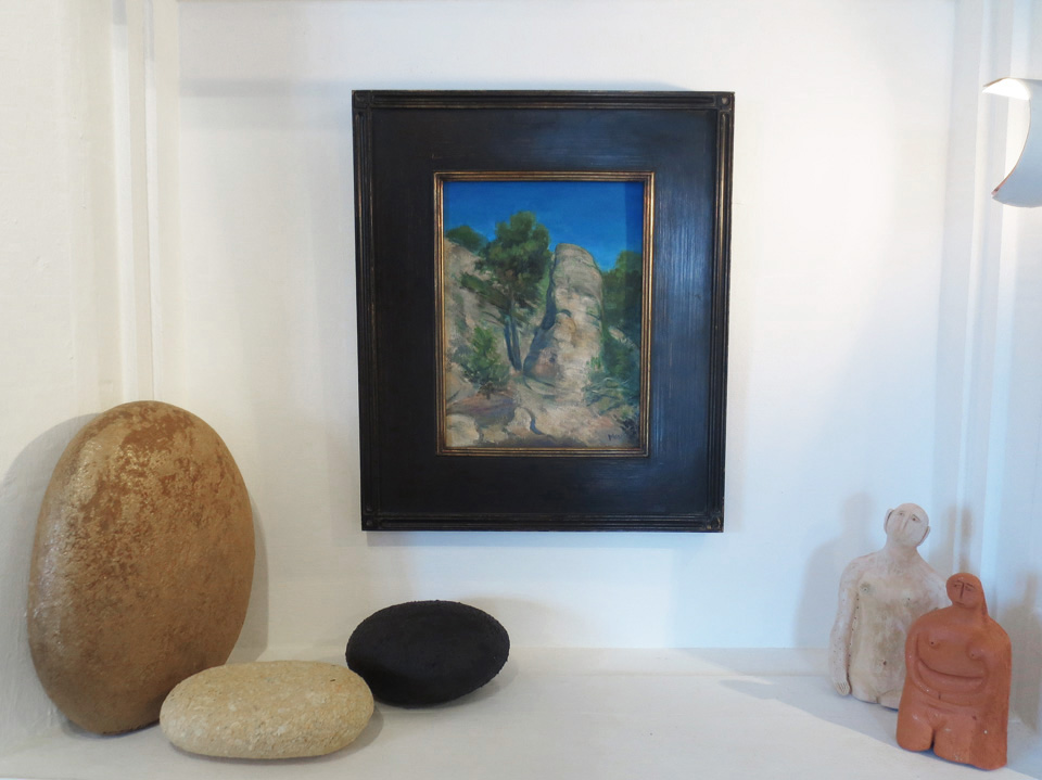 Kim is an artist; an oil painter. I’m not sure if any of you are aware this. You likely know him primarily as a great cook (see previous posts Italian Roast Pork Loin (Porchetta), Date Nut Bread for Christmas, A Great Holiday Supper: Taragon Chicken With Mushrooms, Kim Moss’s Elegant Seafood Paella, Adventures in the Art of Bread Making… and, and, and…) as well as an excellent friend to me (see previous post Taking it Slow in New Mexico). But that’s a rather flat portrait of any person. Don’t get too excited though, I’m not going to interview Kim for this post, although I hope we’ll do that sometime. For now I’d just like to show you some of his paintings.