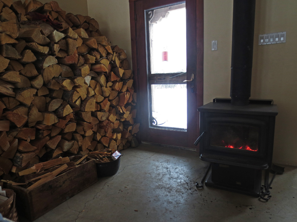 We are all snug in this well-built, tight, home, with the wood bin full.