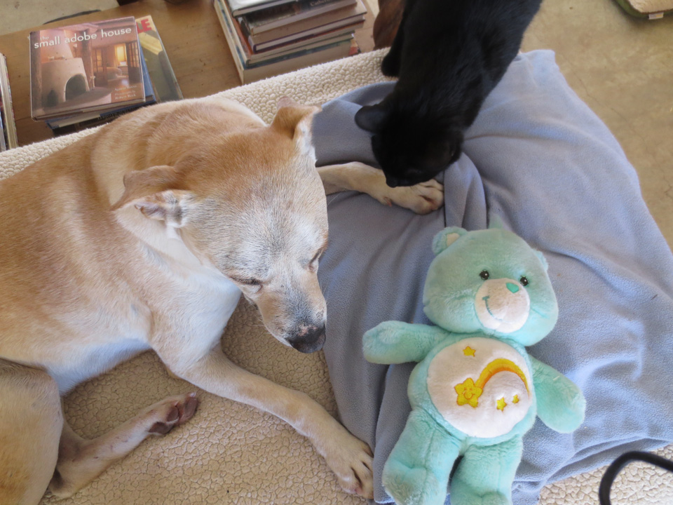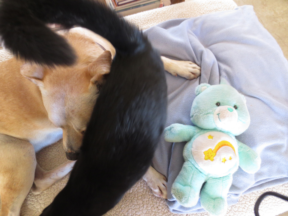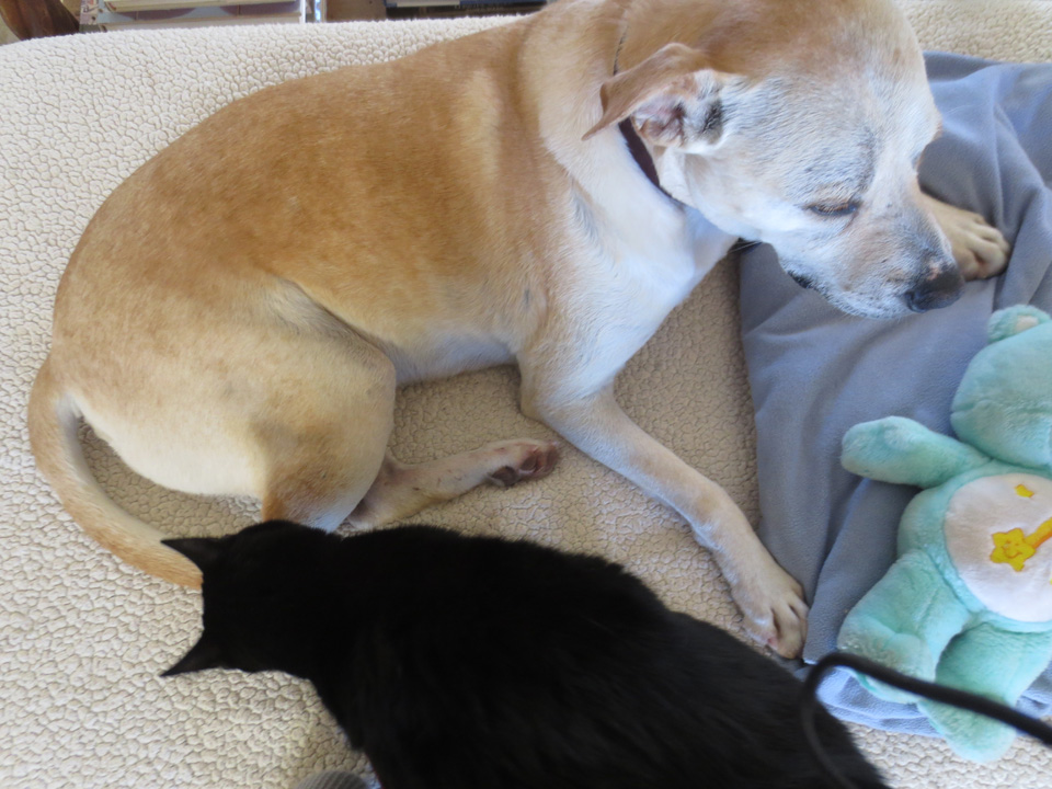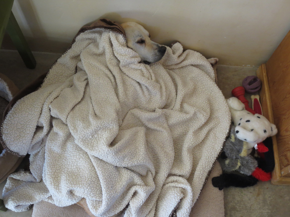 In spite of starting this round of rather scarey treatments (see previous post Rescue Dog, Finn, Needs Rescuing Again), Finnie is doing fine. I wanted to reassure you all that he’s actually handling it amazingly well so far. He doesn’t seem to be feeling any ill effects which is just such good news.