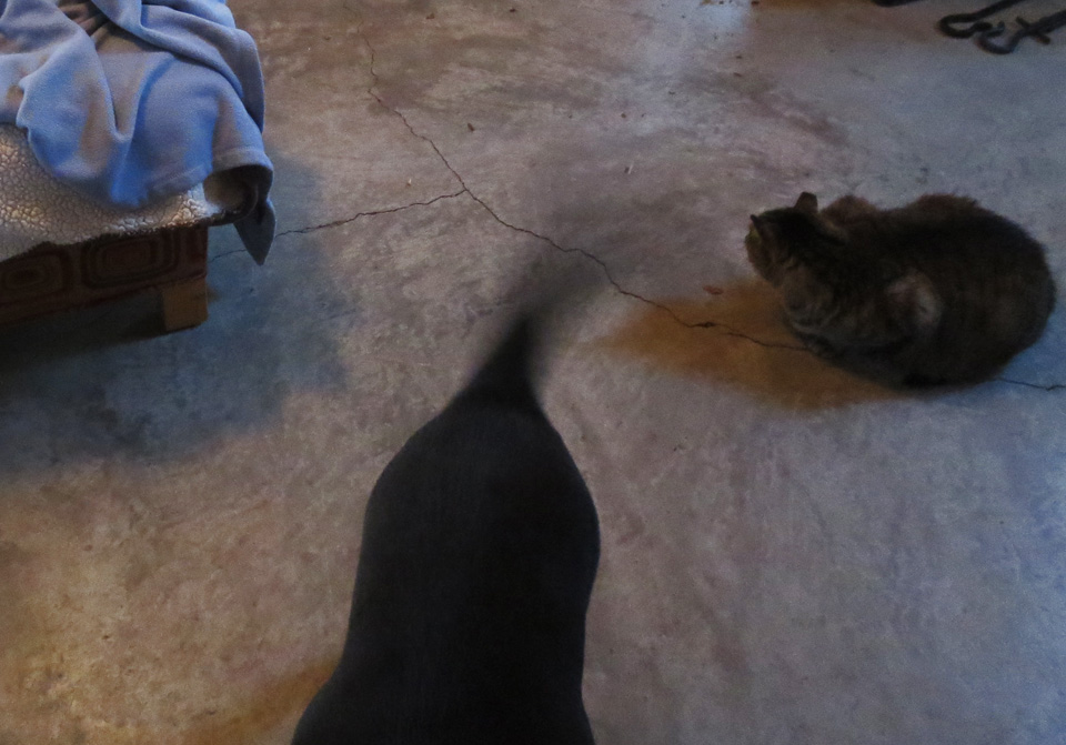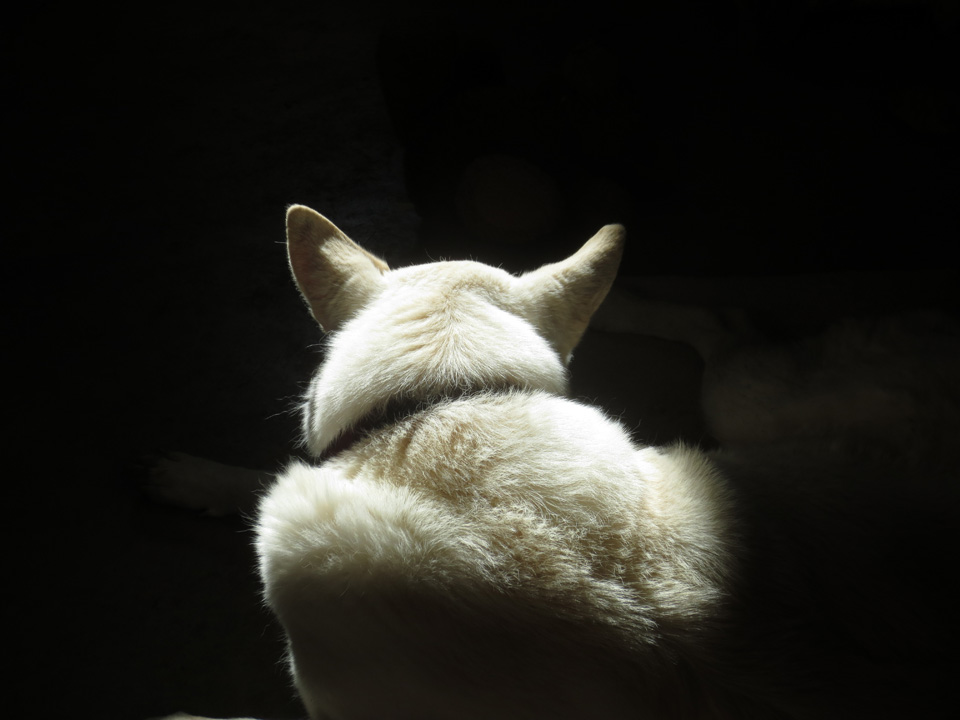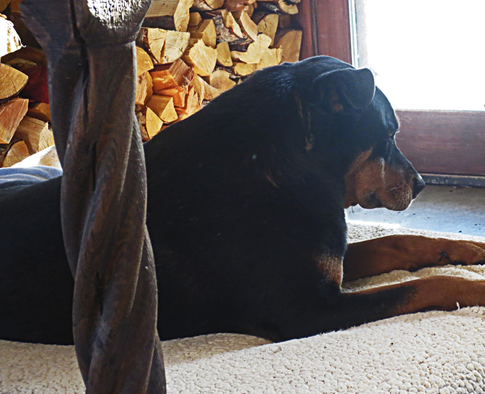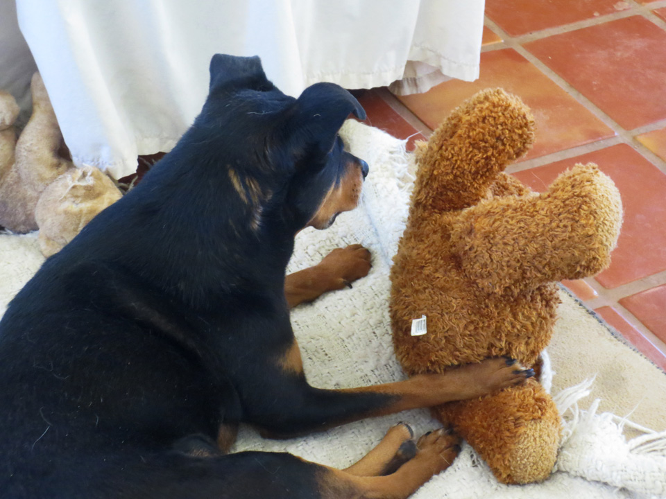 But, as I said, things have changed. I can actually sit with her, now, and pet her anyplace anytime. I massage her ears and her muscles, I scratch her back and tummy and chest (she favors her chest and lifts her front paws so I can get in there), and I stroke her–long, luxurious, caresses from her nose, down her back, to the tip of her tail; under her soft mouth and chin, her sweet neck and dulaps. She gazes up at me in wonderment and rapture. And I say to her, “You see what you’ve been missing? The DOGS can’t do this for you, can they?”
