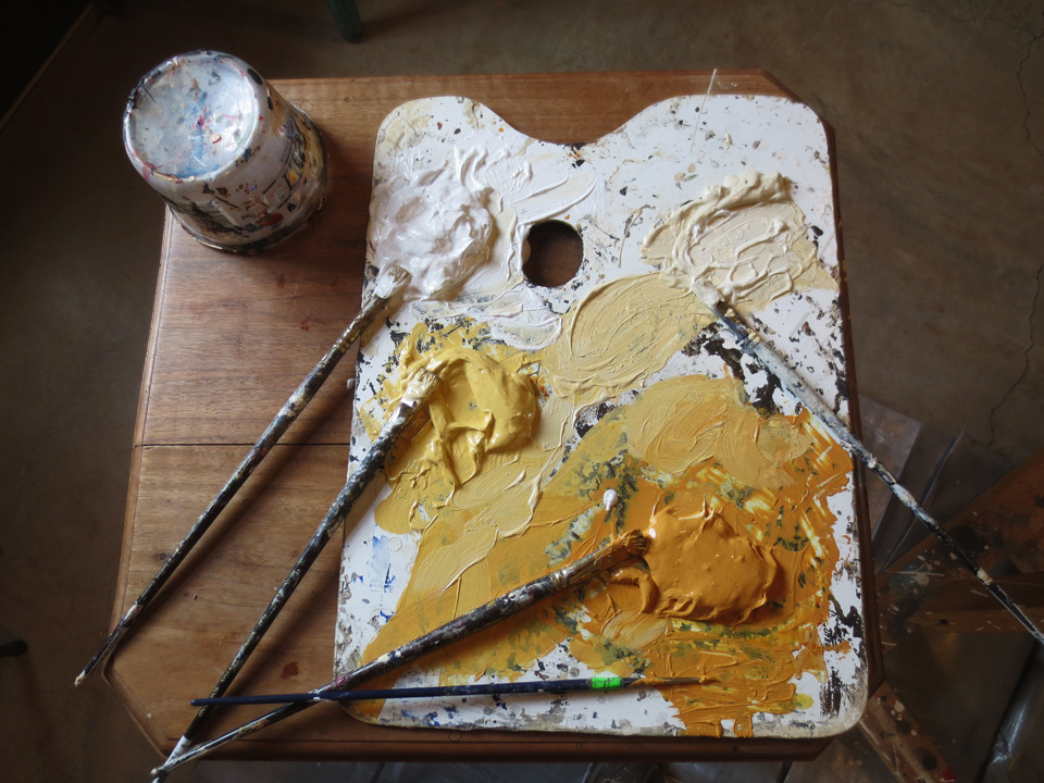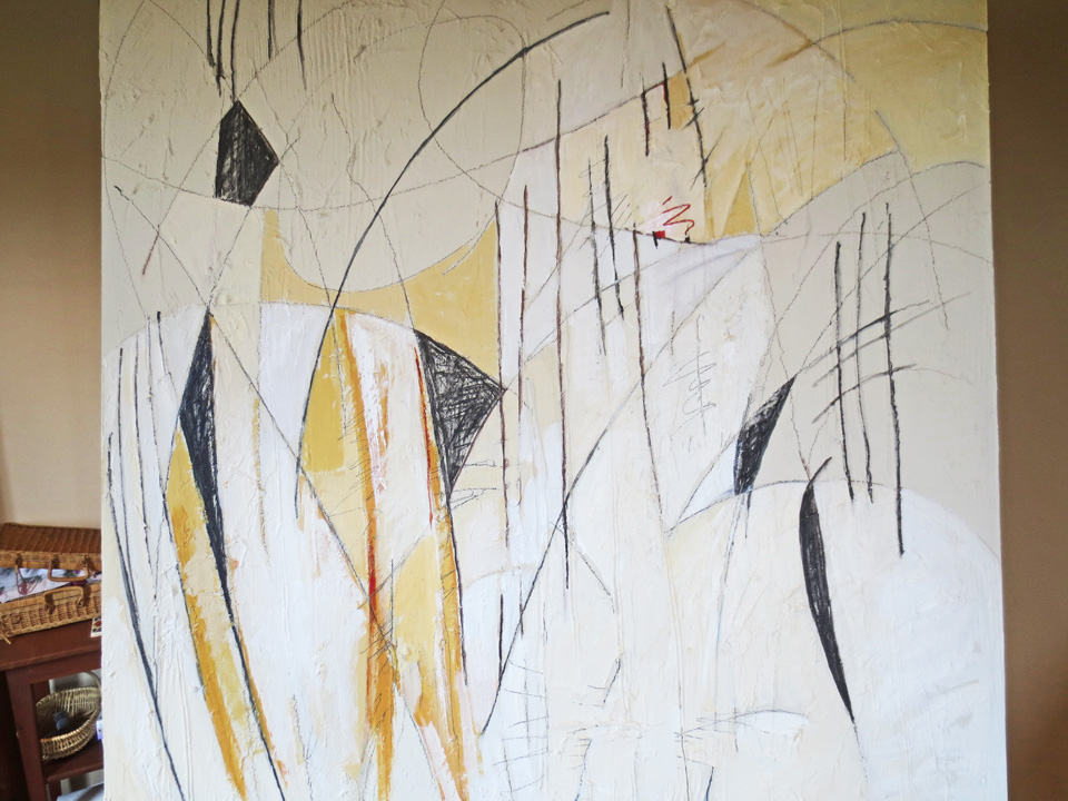 But in the midst of all this clearing I’ve been doing (see previous post Clearing As a Creative Act) I began to feel paintings inside me. So I began. I went into the new studio space I’d cleared…