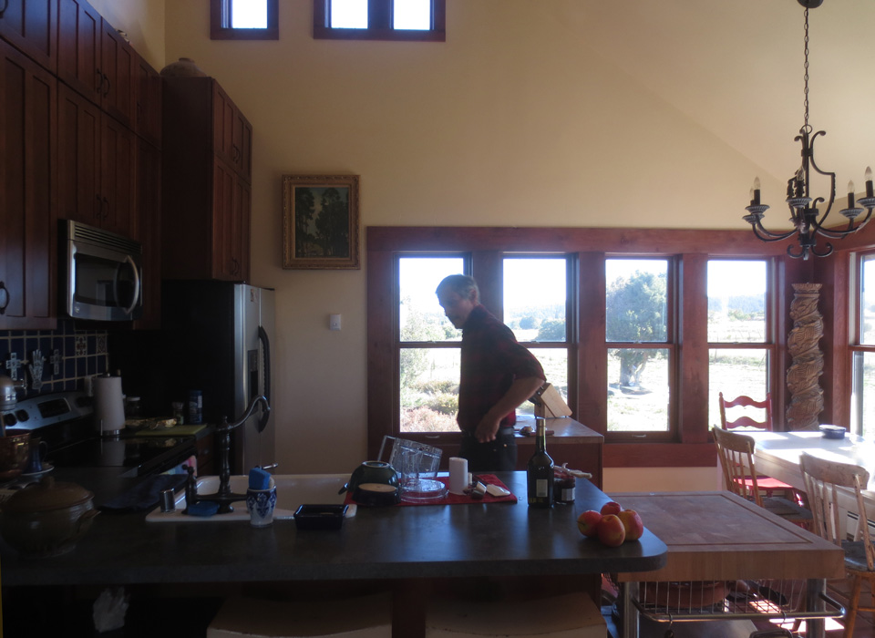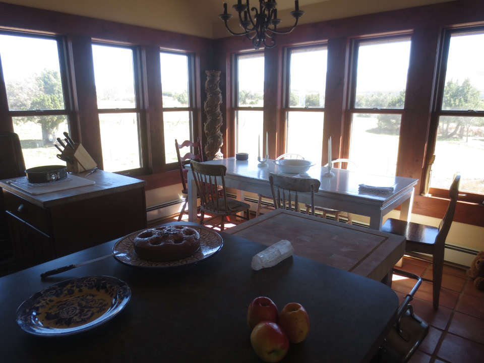 But on THIS day my friend Kim Moss (see previous post A Very Mini Artist’s Colony in New Mexico) is busy baking an almond plum cake in the kitchen…