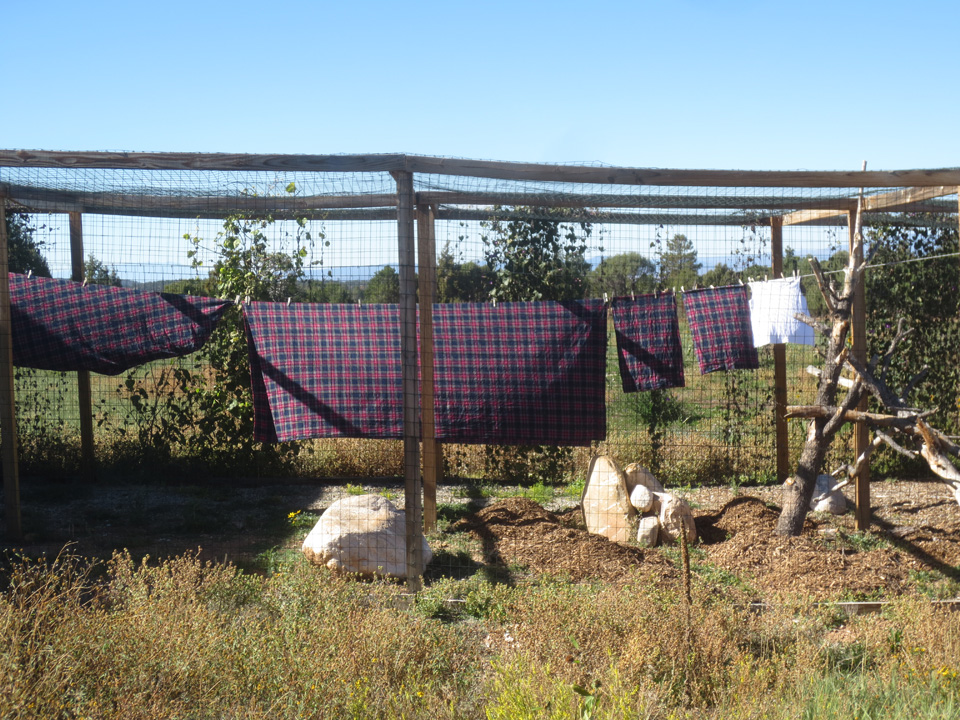 … and in preparation for switching over to my winter bed, I’ve hung new LL Bean flannel sheets out on the line to dry…