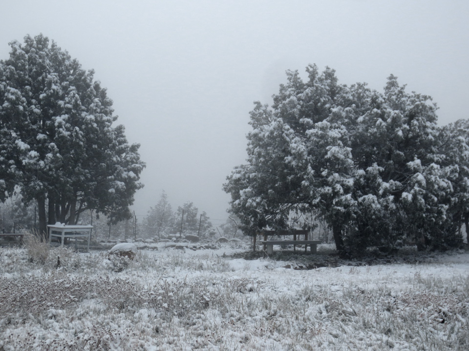 It has already snowed up here on the mountain, several times in fact. Nothing that has stayed around, just wet, early winter snow.