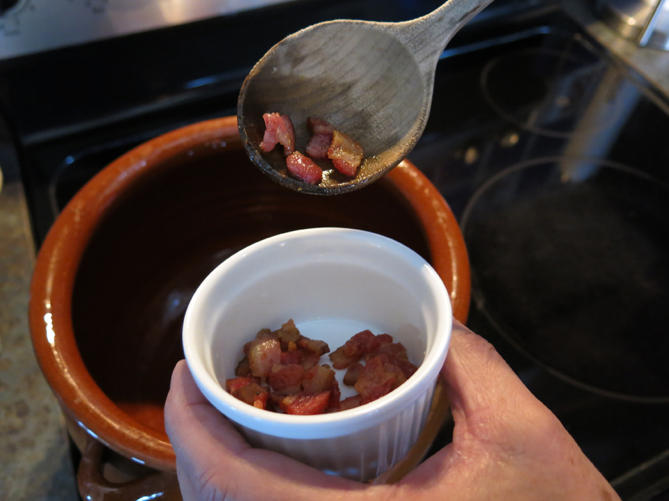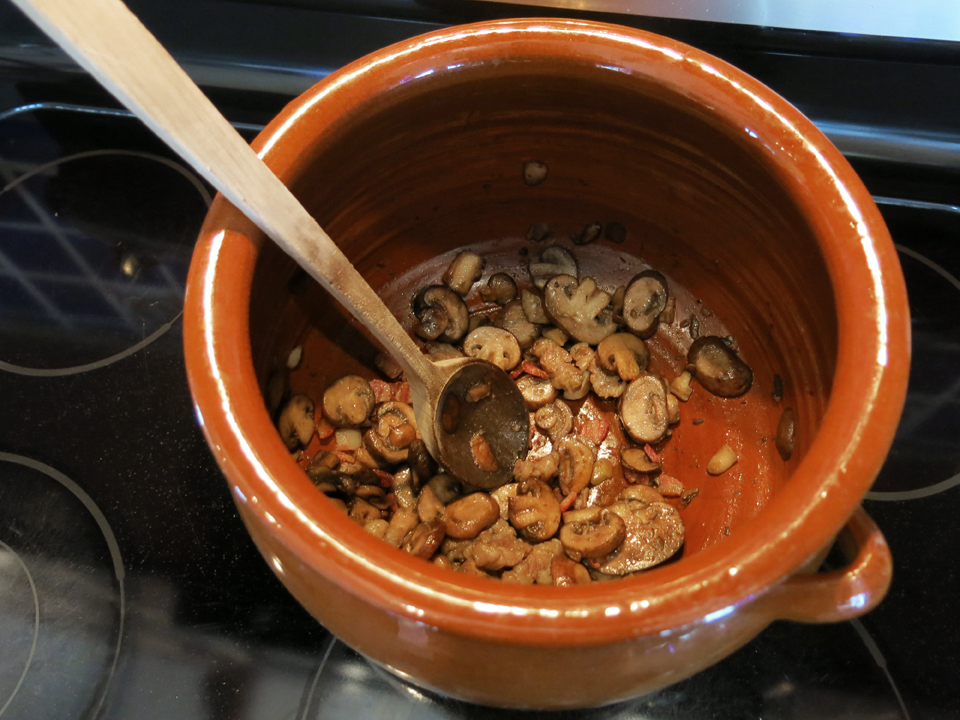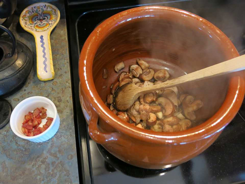 Remove bacon and mushrooms from the pot and return pot to stove…