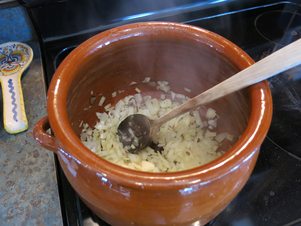 … and brown on top of the stove (Kim used a pottery crock but any heavy-bottomed pot will do).