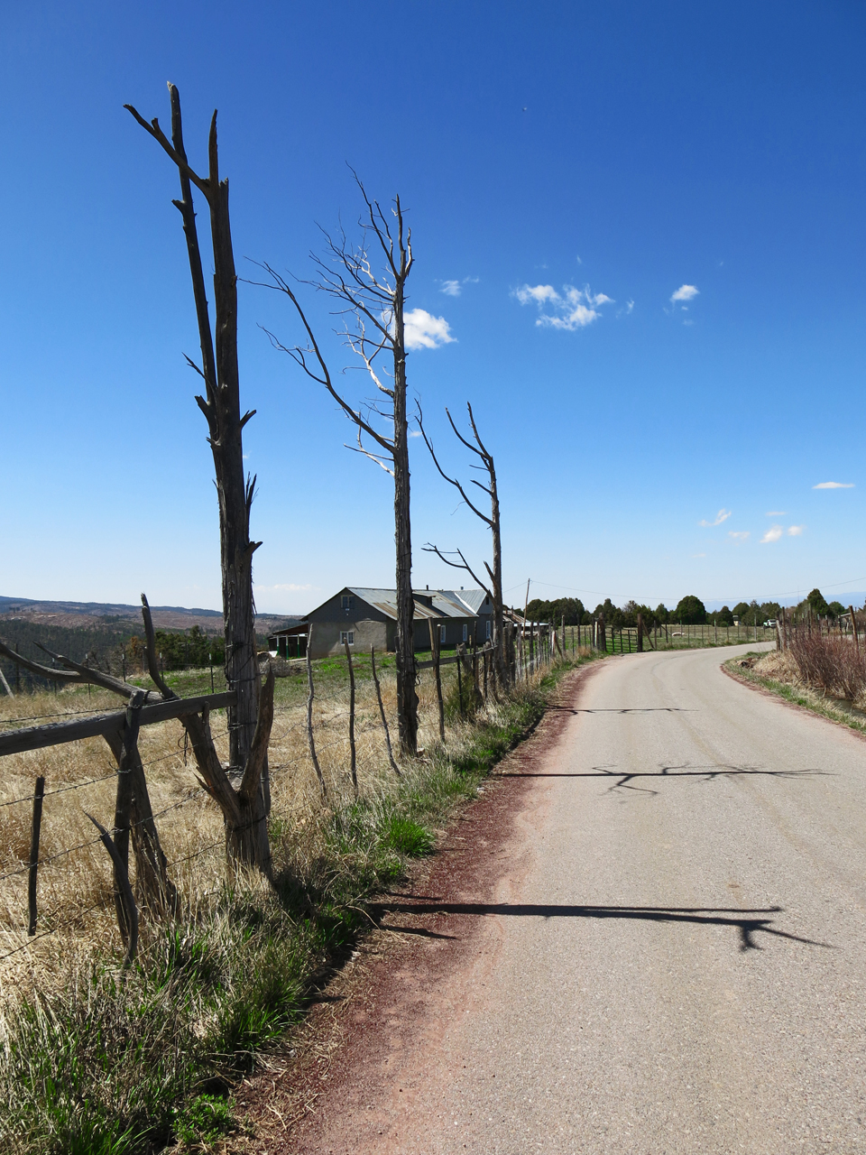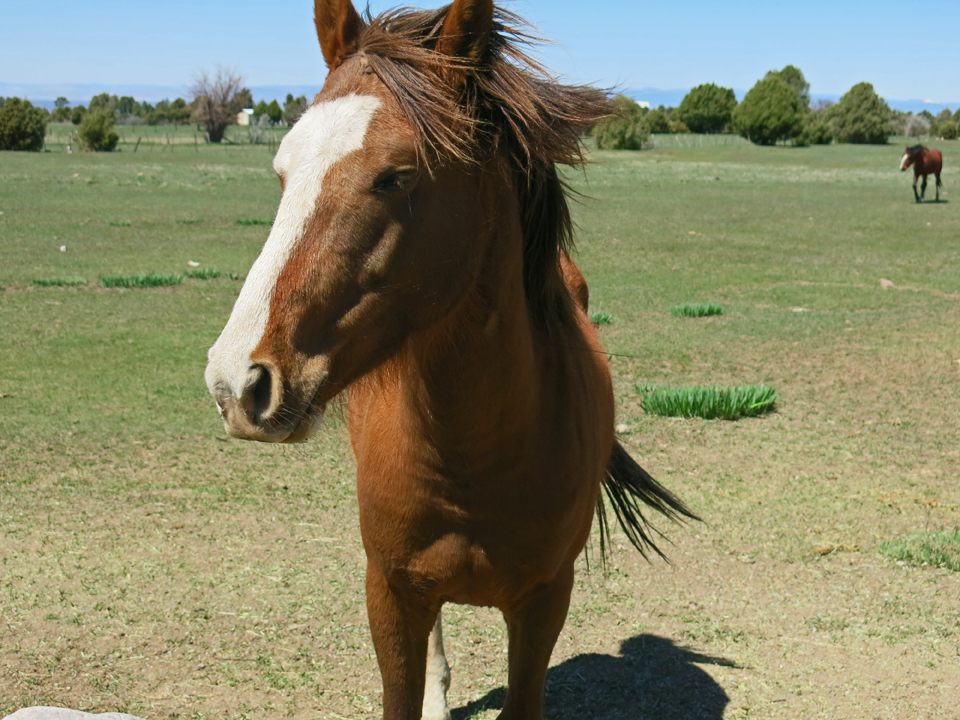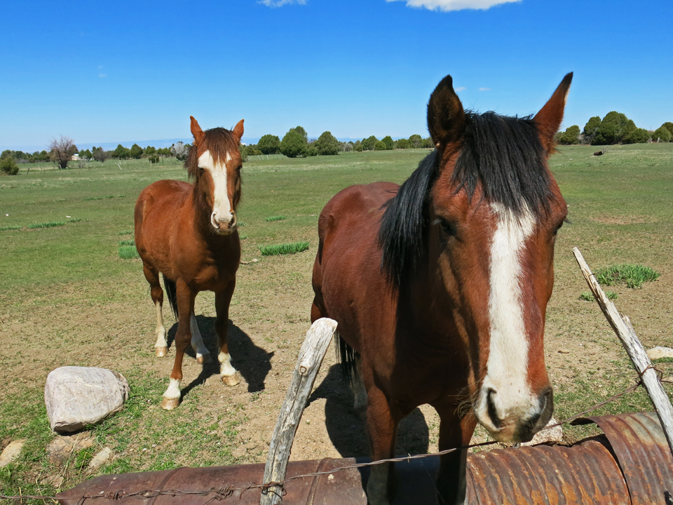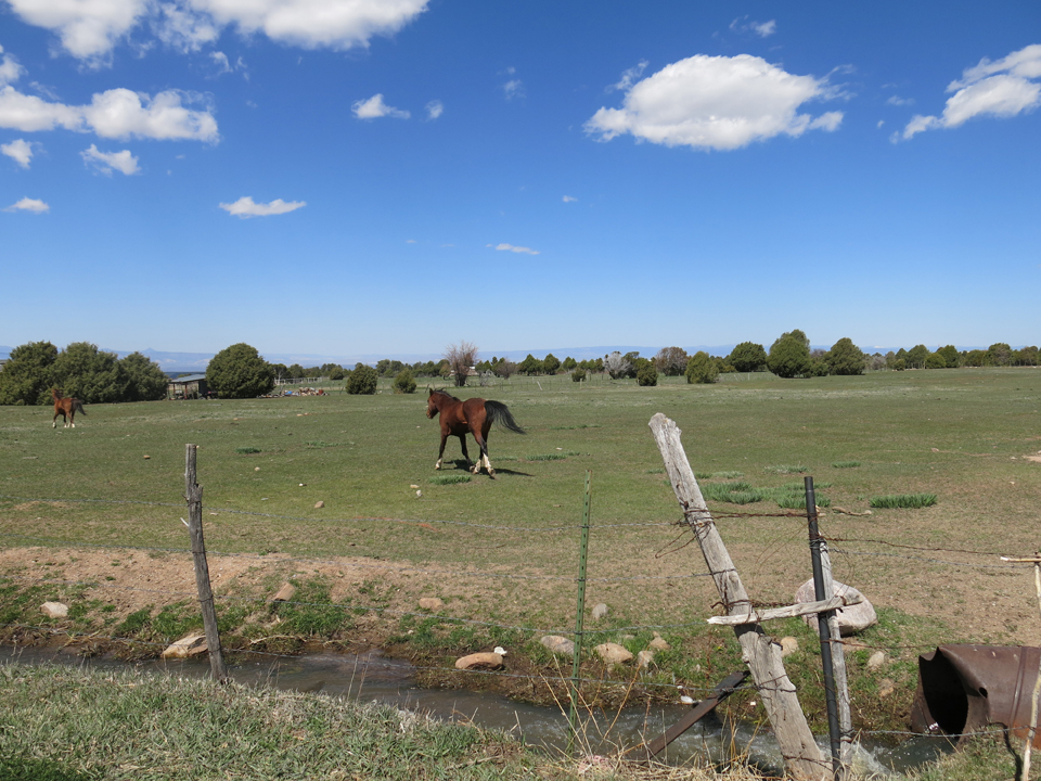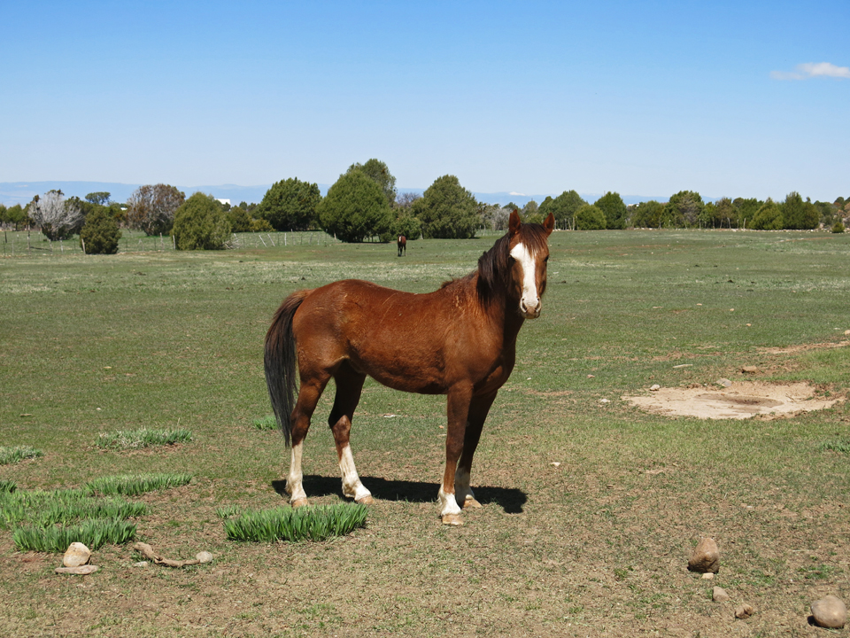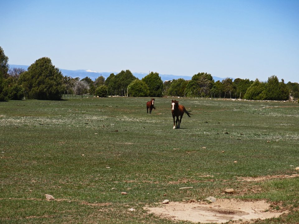 … until, before I knew it, I was standing in front of Rickie’s place, Davida’s place. Many of you will remember that when I first moved to Truchas on the edge of a deep, cold winter, I ended up caring for a small herd of horses that were pastured, at first, in front of my house. It was while they were there that one of the mares, Mariah, gave birth to a foal in the middle of the night, in the depth of a blizzard. It was by luck that a friend and I saw them at sunrise, through the blowing snow and, with the help of a neighbor, ended up saving the little one who came to be called Davida. The herd belonged to a man named Rickie and he moved them away from my house, out to the llano, where I ended up today.