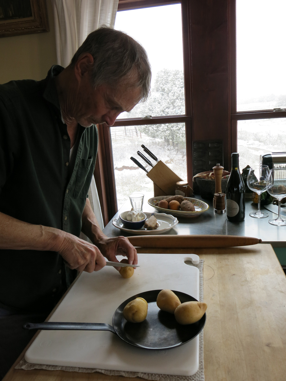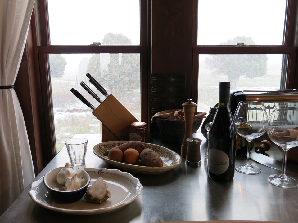 And, in the midst of a surprise spring snow, Kim (see previous post A Very Mini Artist’s Colony in New Mexico) decided to create a simple meal that would honor the opening of the first bottle.
