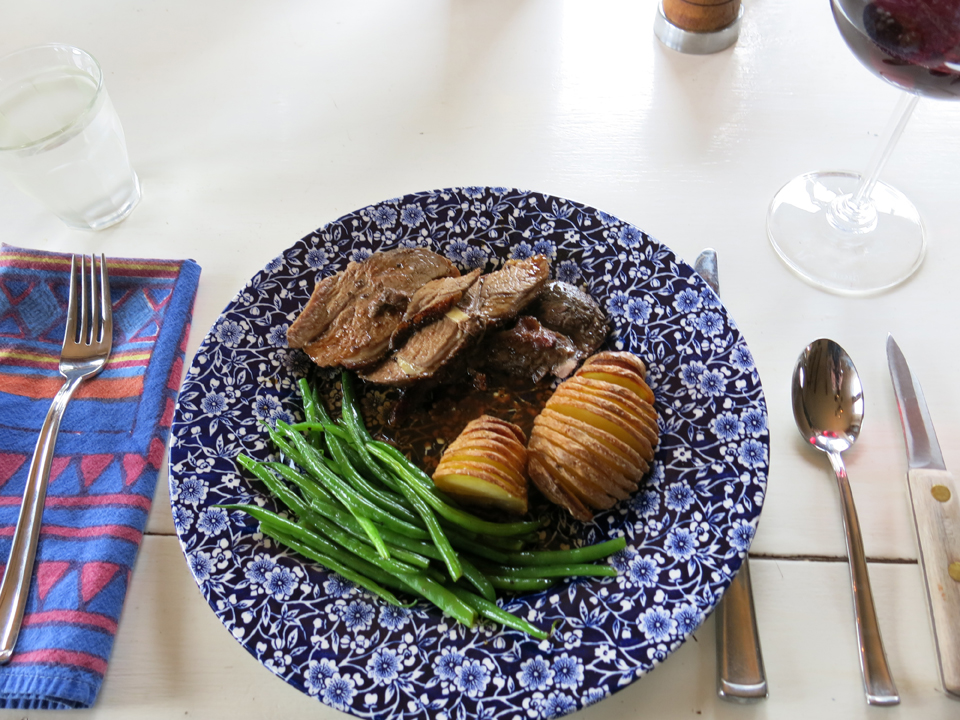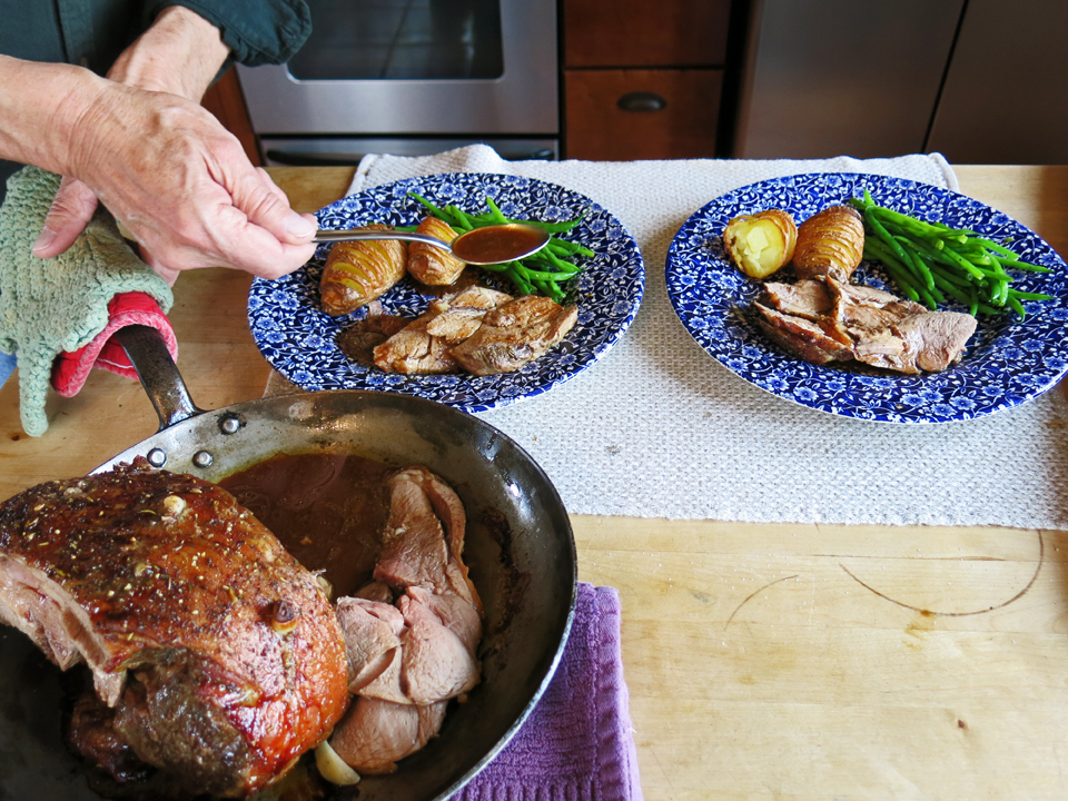 He carefully seasoned a beautiful leg of lamb, tucking it into the oven for a couple of hours…