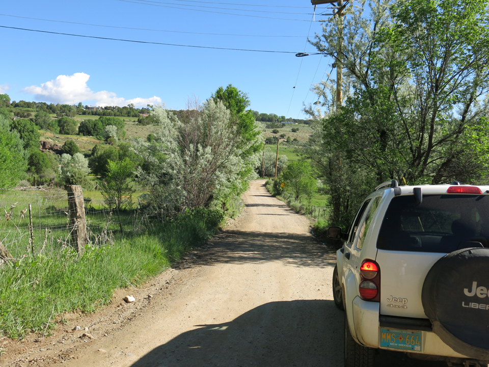 Well, Mark, after that lovely trip to Rociada (we’re going there again next week to experience it in this green spring we’re having), I knew I had to travel to the place Cleofas describes once I was done with the book. It was difficult to make sense of Rociada too, at first, but the difference there was that there were people available (in a real estate office nearby) who knew the history of the place and were able to direct us to Upper Rociada and lower. The only person we found in Arroyo Hondo didn’t know anything about the history. I’m almost tempted to try again. We’ll see.