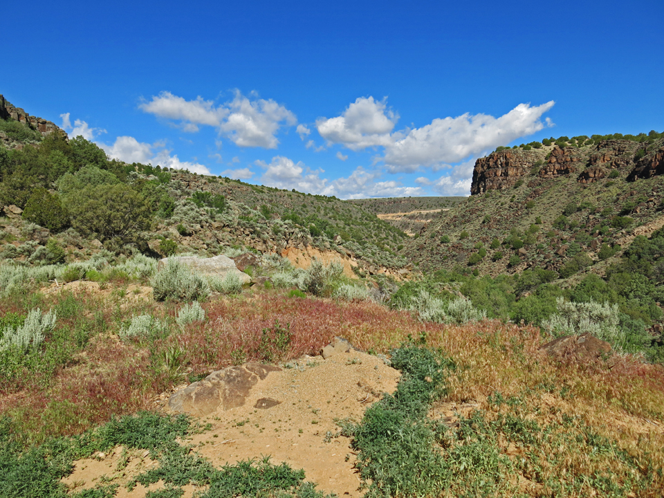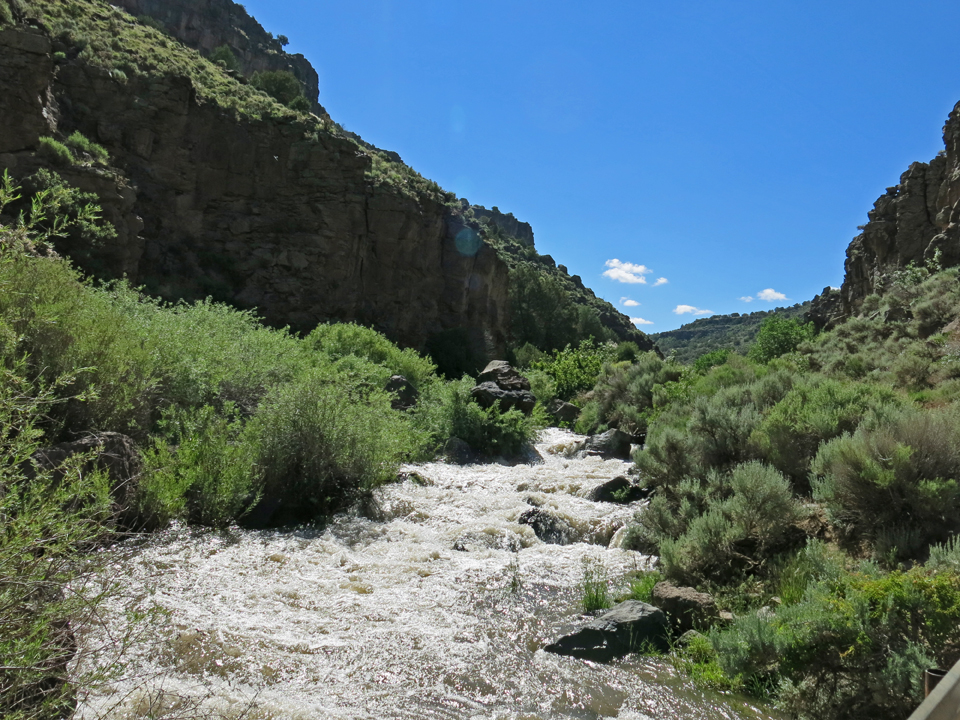 But I did find the Rio Hondo River and drove the two miles steeply down, “…winding amid pillars of rock that rise in places like giant sentinels,” to where the Rio Hondo empties into the Rio Grande. And it is exactly as magnificent as she describes (so beautiful that I forgot to take pictures of it).