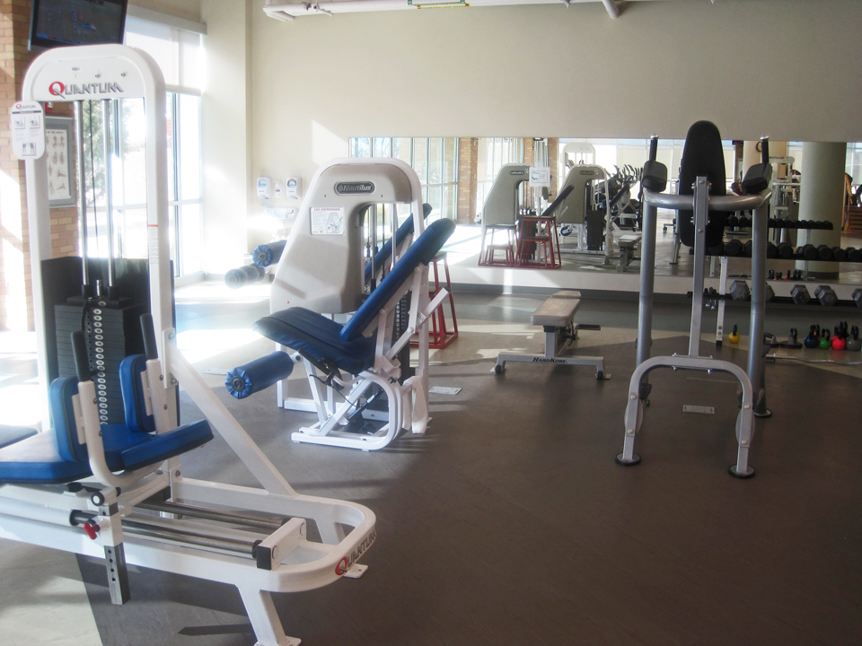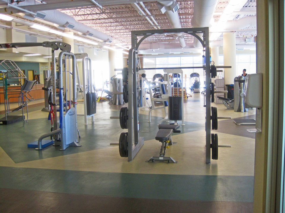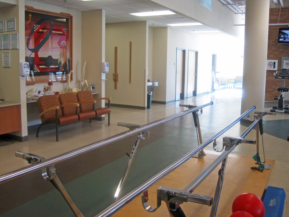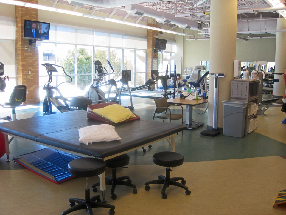 And then there’s the gorgeous facility I’m privileged to use. It’s within the Presbyterian Espinola Hospital and it’s there to be used by patients who need physical therapy and rehabilitation for various reasons. I mean look at this place, it’s brightly lit with big windows…