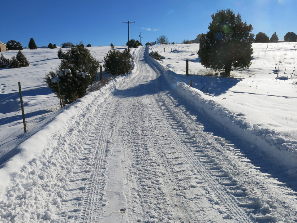But now that I’m committing to it, I find it’s not so bad considering the scenic road that takes me there, out my own snowy drive…