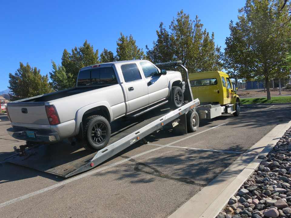 Nick and his crew felt it’d be safe to drive the truck a short distance. So the tow truck dropped us off in a nice big parking lot…
