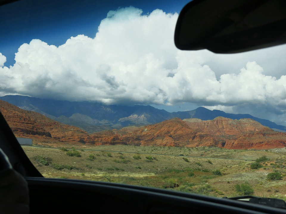 But, no, I loved the stunning red rock cliffs AND the changing colors of the trees and shrubs equally. I watched deciduous leaves dotting the forest, almost like a dance, as we made our ascent. But the black storm nipped at our heals, thunder rumbled through the canyon, as the storm started to overtake. It was almost as though Snow Canyon herself was reaching out through her various connecting sandstone cliffs and ridges, trying to pull me back to her…