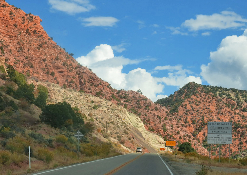 … and then we were exiting the main highway and taking the turnoff to Cedar Breaks National Monument. I’d forgotten what a stunning road this is…