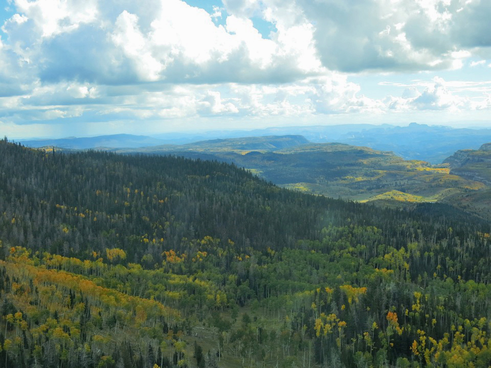 Then almost all at once we leveled off. We had reached the Markagunt Plateau which stands at about 10,500 feet, the same as if we’d driven to the top of Truchas Peaks and parked the trailer there. In the last 45 minutes to an hour, we had climbed 7,000 feet.