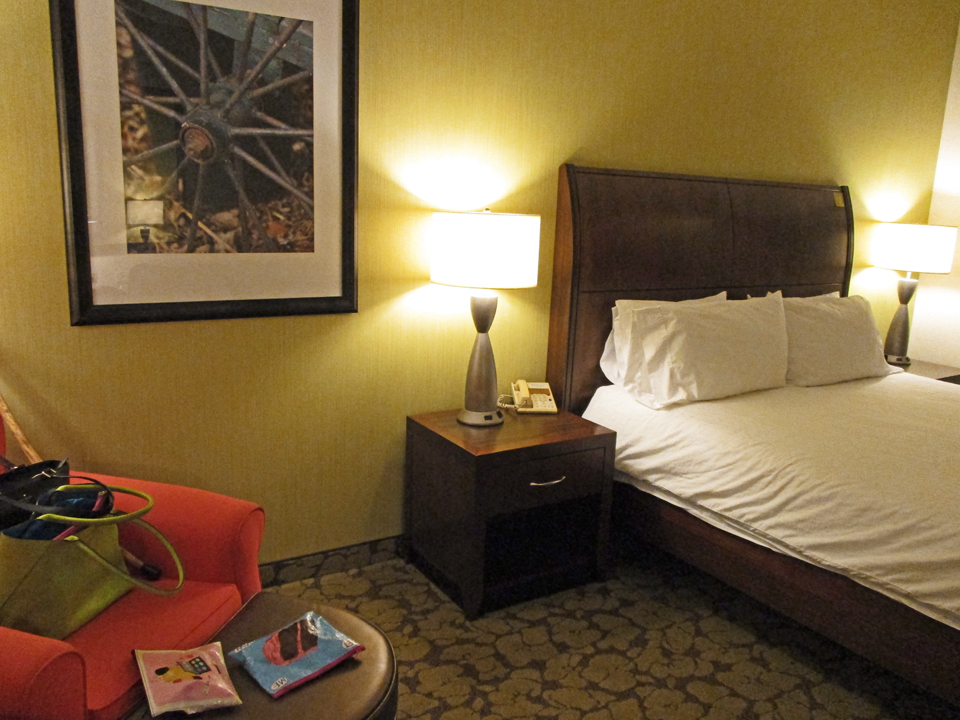 I flew into Portland but arrived so late, in the wee hours of the morning in fact, that I took a hotel room. It doesn’t look like much in this photo but let me tell you the sight of the bed, alone, made me swoon and want to weep with happiness… It had been a long day.