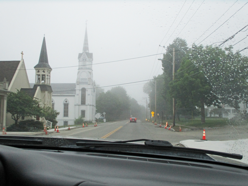 … I was just too captivated, drinking in all of the lush green, the beautiful old Colonial villages we passed, the DRIZZLE on the car’s windshield…