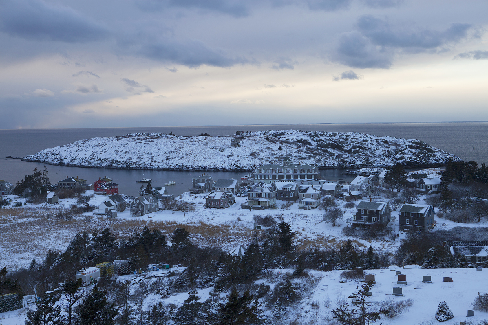The island’s isolation, being 12 miles out in the Atlantic, has become expensive. Energy costs, particularly, are sky high so it’s often hard to afford being warm on Monhegan in the winter.