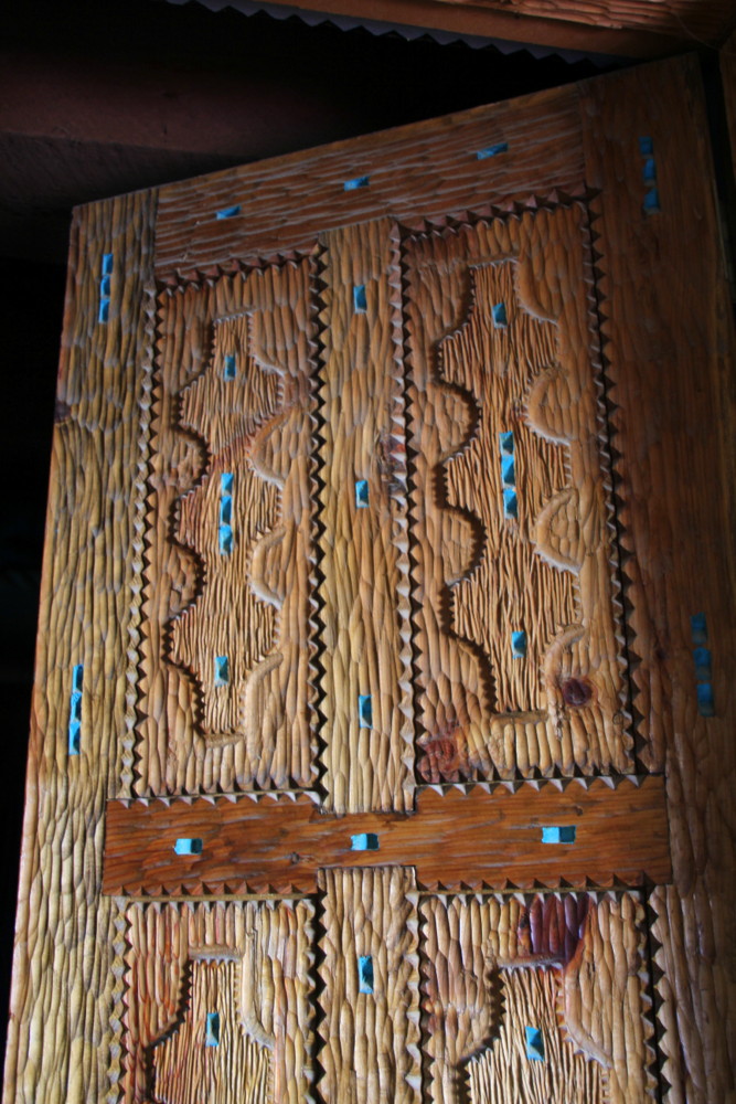 Across the field stands a doorway that has the mark of his hand, the new Truchas Mercantile is graced with several of his doors.