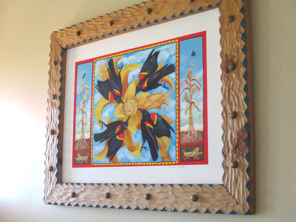 Lorey’s cabinets, Judith’s bench on her front porch, the chest he built to cover one artist’s electric box, similar to the one he was designing in his head for me as well, which he would get to after the Art Tour.