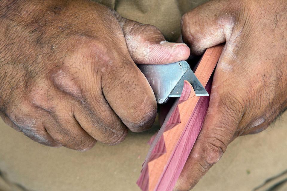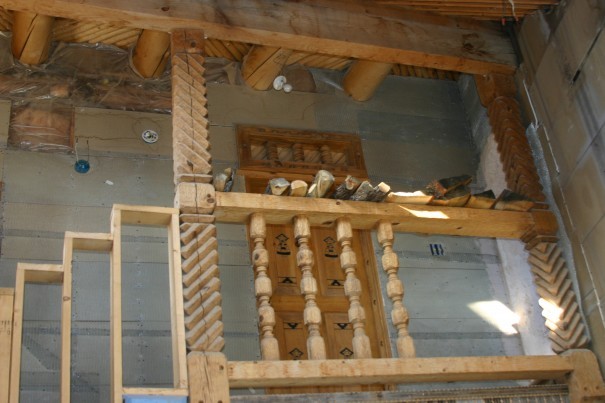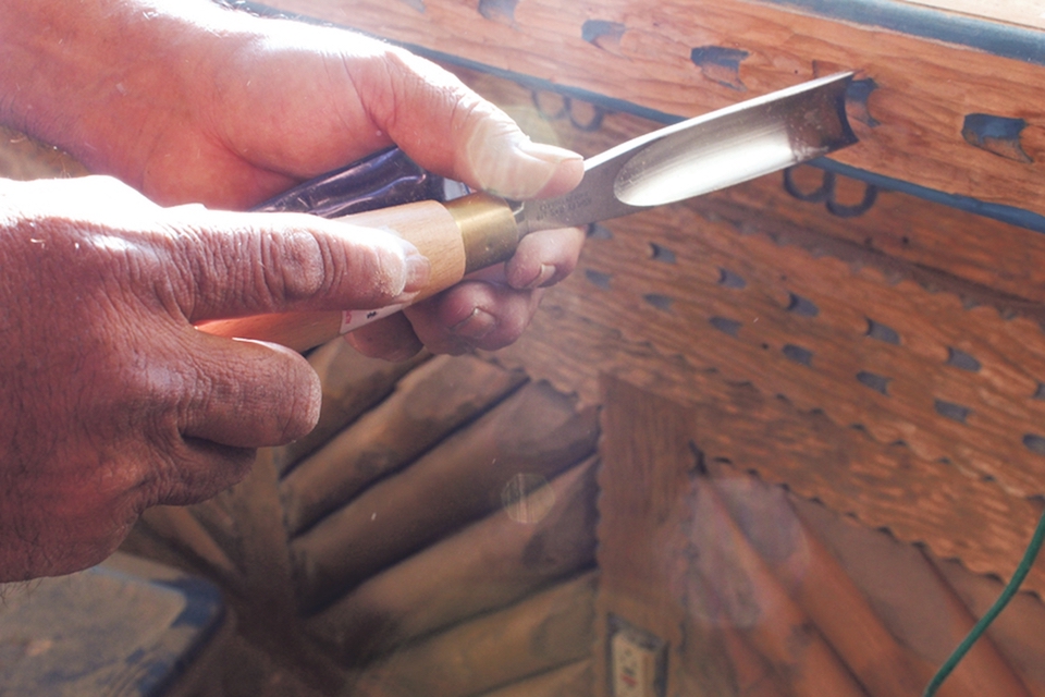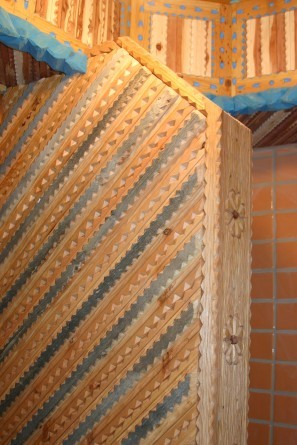 Just about every piece of wood in the place has been chip carved in the traditional way with that utility knife, even the floors…