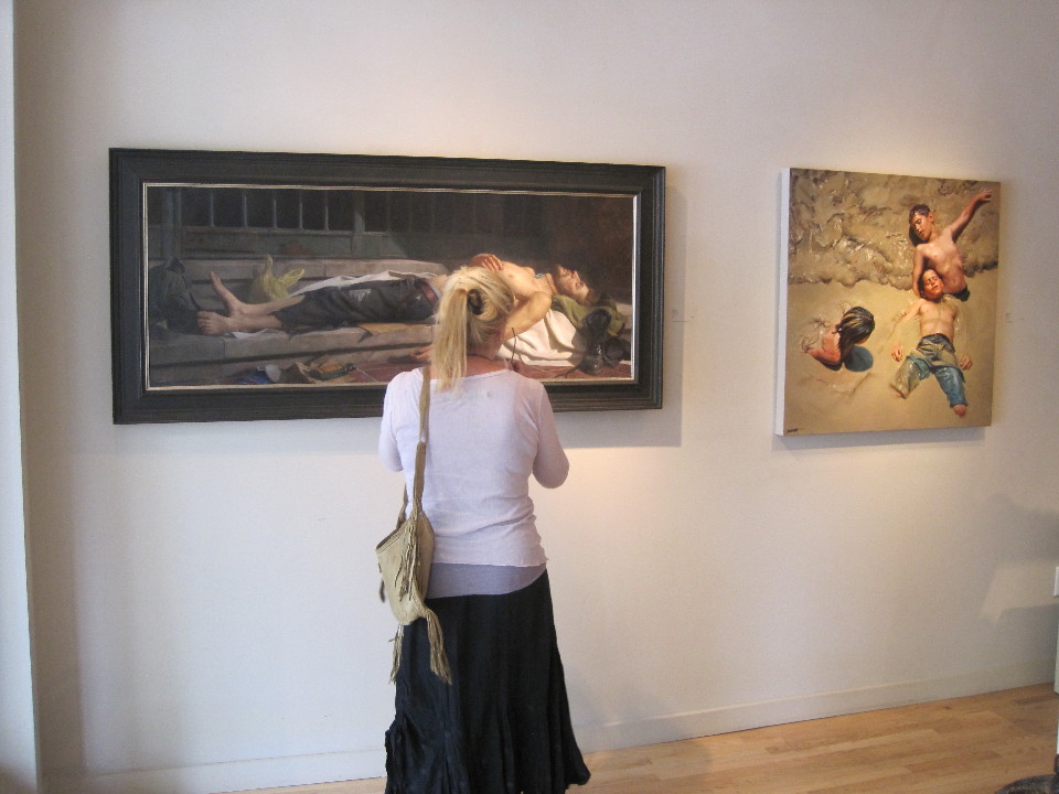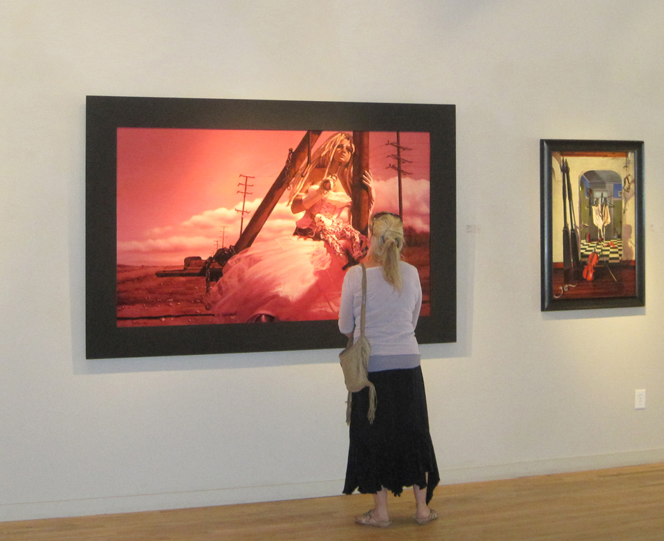 I had mentioned the opening of “Decadence” at Evoke Contemporary Gallery in my post about Lee Price’s show “Full” (see previous post Lee Price’s Show “Full” at Evoke Contemporary Gallery, Santa Fe), but had not yet had a chance to see the show myself. Anna and I went to Santa Fe the other day, specifically, to see it before it came down at the end of the month. “Decadence” is a group show curated by John O’Hern. Mr O’Hern and Kathrine Erickson, the director/owner of Evoke Contemporary, had collaborated on a group show last year, the splendid “Re-presenting the Nude.” Anna was invited to participate in that show, by the way, but it was hung before I started doing the blog, so there are no posts. Sorry. It was both a beautiful show and a resounding success so Kathrine and John knew they had to do something even better this year. The concept for “Decadence” came about while they were sitting in the gallery kicking around ideas. They looked at Eric Wert’s painting, “Deluge”, hanging on the wall and marveled at its decadence. And in that moment the show was born.